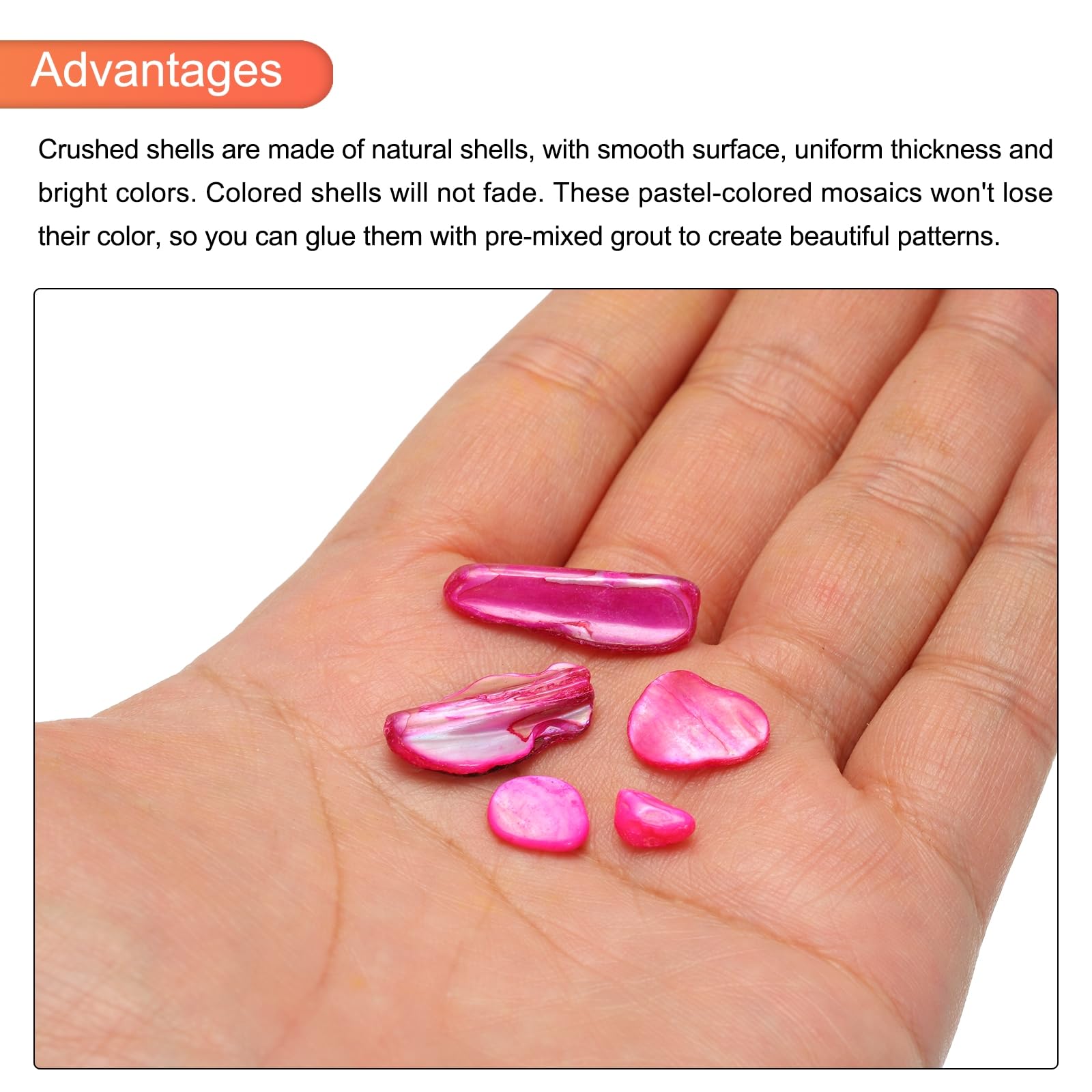Egal ob du Blumentöpfe verschönern, Bilderrahmen gestalten oder Mosaike legen willst - mit diesen Muschelfragmenten wird's was Besonderes! Einfach mit Kleber oder Fugenmasse befestigen. Die Farben verblassen nicht - deine Kunstwerke bleiben lange schön.
