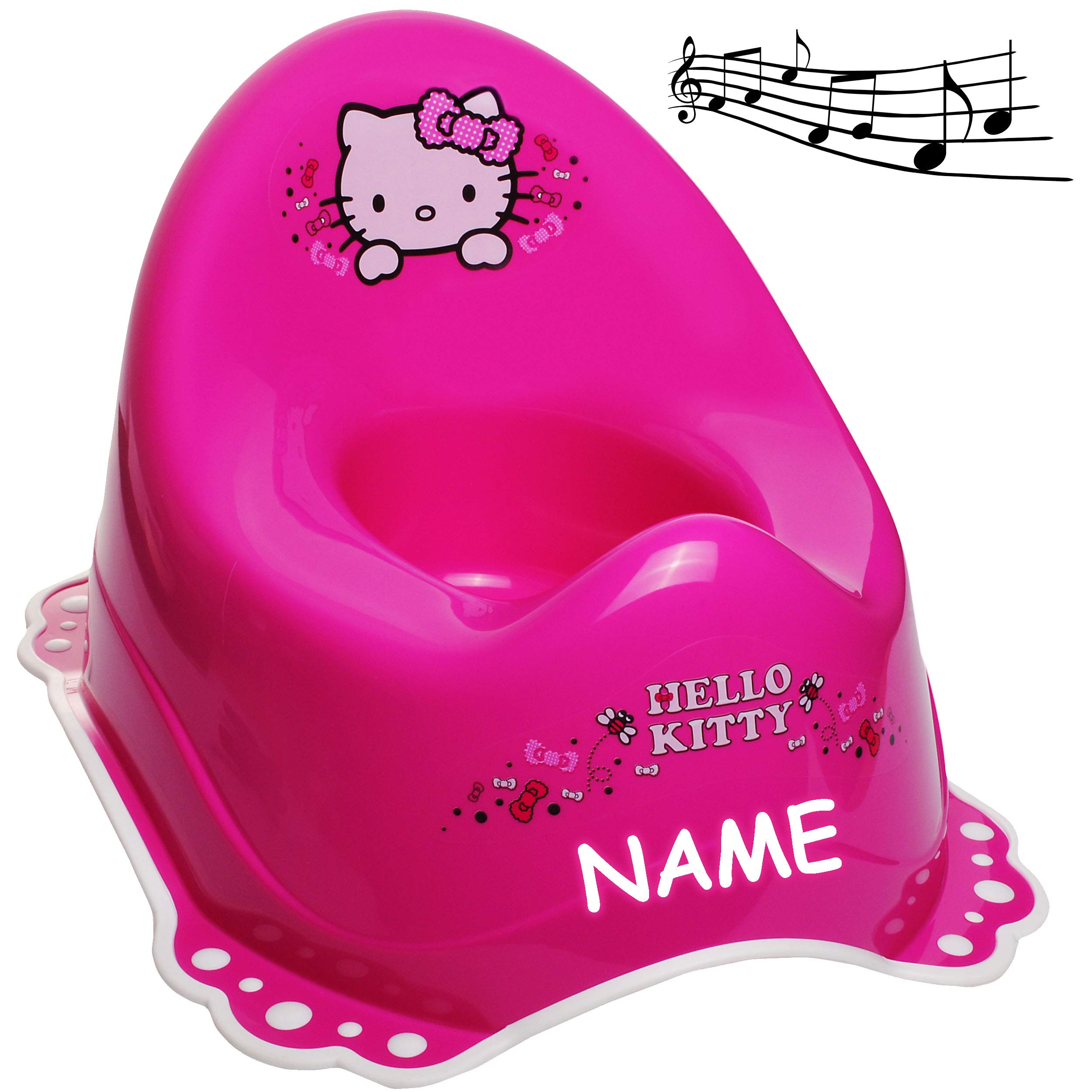 Töpfchen-Training mal anders! Dieses süße Musik-Töpfchen im Zebra-Design macht das Trockenwerden zum spaßigen Erlebnis. Sobald Flüssigkeit den Topf berührt, ertönt die fröhliche \Lambada\-Melodie - das motiviert dein Kind und belohnt den Erfolg!\n\nMit der hohen Rückenlehne und dem ergonomischen Sitz sitzt dein Kind sicher und bequem. Der integrierte Spritzschutz sorgt für mehr Hygiene und weniger Sauerei. Aus hochwertigem, BPA-freiem Kunststoff und komplett abwaschbar.\n\n• Soundmodul mit \Lambada\-Melodie\n• Rosa Zebra-Design\n• Hohe Rückenlehne für sicheren Sitz\n• Integrierter Spritzschutz\n• BPA-frei und abwaschbar\n• Batterie bereits enthalten\n\nDas Soundmodul ist ausschaltbar und der Name deines Kindes kann personalisiert werden - frag einfach nach!