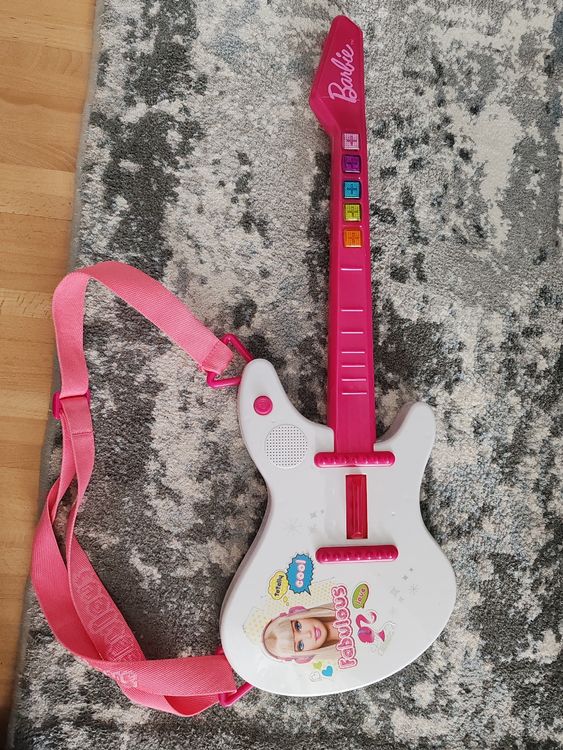 Rockstar-Feeling für die Kleinen! Diese elektronische Barbie-Gitarre bringt Musik, Licht und jede Menge Spielspaß ins Kinderzimmer. Mit 4 Saiten, eingebautem Lautsprecher und coolen Soundeffekten weckt sie die Kreativität deines Kindes. Hergestellt aus ungiftigen, kindersicheren Materialien, ist sie robust genug für wildes Rock-'n'-Roll-Spiel. Leicht und handlich kann sie überall mitgenommen werden - ob zum Spielen bei Freunden oder für unterwegs. Perfekt, um erste musikalische Gehversuche zu machen und die Fantasie anzuregen. Achtung: Nicht geeignet für Kinder unter 3 Jahren wegen verschluckbarer Kleinteile. Mach dein Kind zum Star der Familienband!