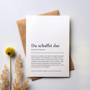 Manchmal braucht man einfach eine kleine Aufmunterung! Dieses süße gestrickte Vergissmeinnicht mit der Botschaft Du schaffst das ist perfekt für alle, die gerade vor einer Herausforderung stehen. Ob Prüfung, Jobwechsel oder einfach ein schlechter Tag - dieses kleine Teilchen erinnert daran, dass man stärker ist als man denkt. Handgestrickt aus weicher Wolle und Baumwolle, fühlt sich toll an. Mit dabei eine hübsche Karte mit dem motivierenden Spruch. Passt in jede Tasche als kleiner Glücksbringer für unterwegs. Ein Geschenk das von Herzen kommt und wirklich was bedeutet. Zeig deinen Lieben, dass du an sie glaubst!