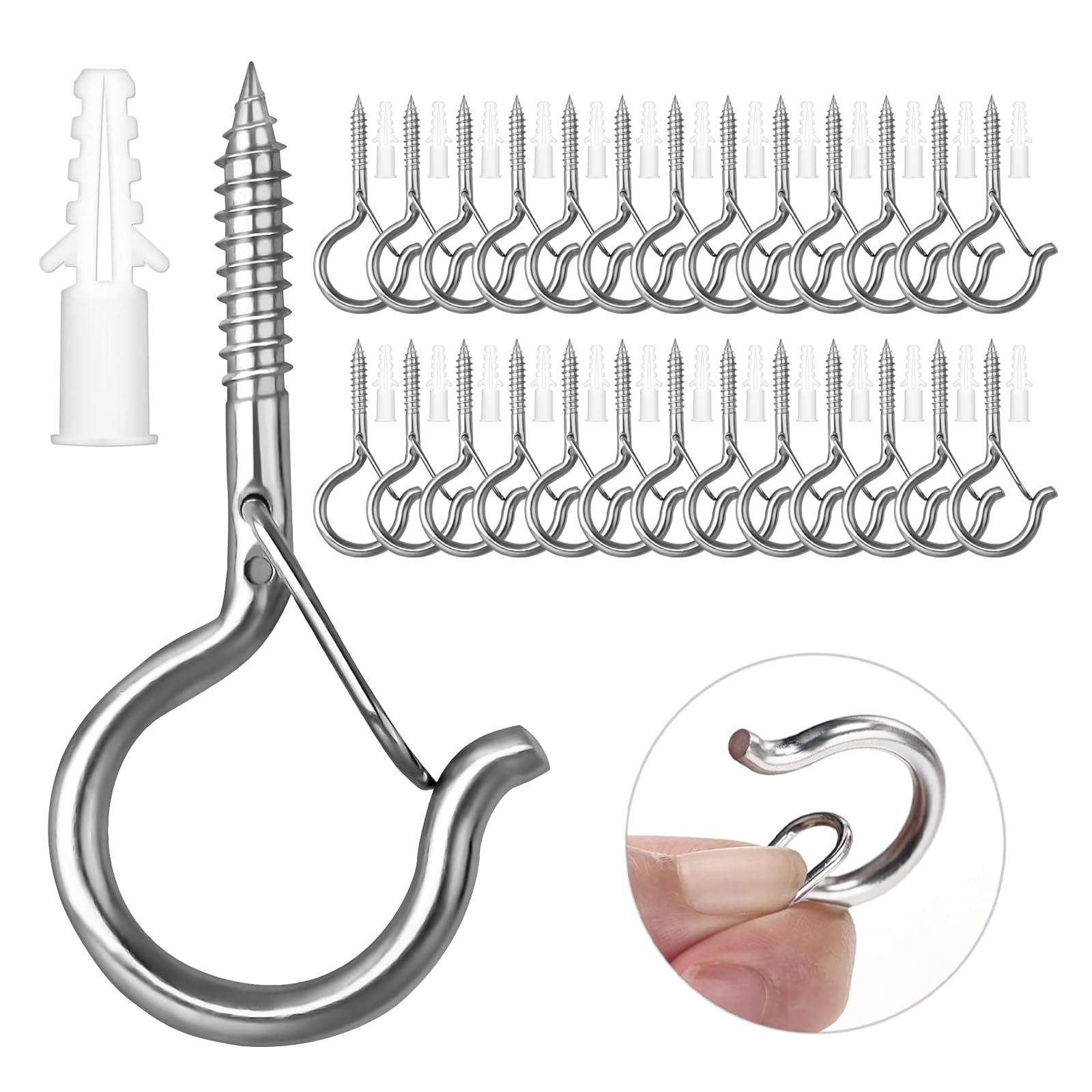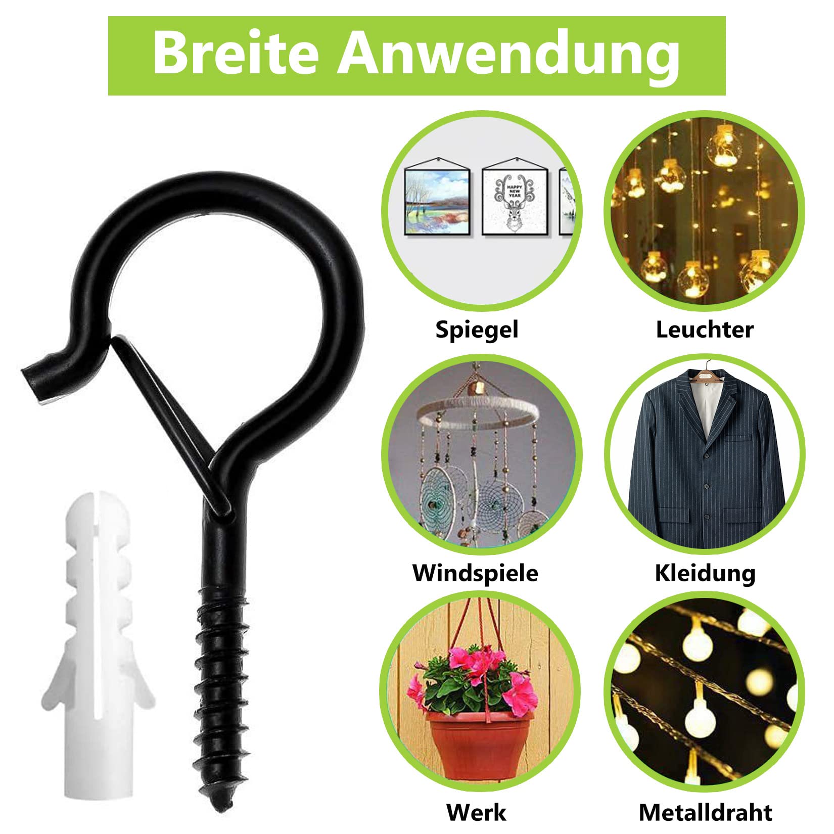 Ordnung muss sein! Dieses 30-teilige Schraubhaken-Set von Muyohix macht Aufhängen zum Kinderspiel. Aus rostfreiem Edelstahl gefertigt, sind die Haken witterungsbeständig und langlebig. Mit 60mm Gesamtlänge und 20mm Gewinde passen sie für die meisten Anwendungen. Das geniale Sicherheitsverschluss-Design verhindert, dass Gegenstände bei Wind herunterfallen. Inklusive Expansionsrohren und Montageschlüssel - also alles dabei! Einfach in Holz, Beton oder PVC schrauben und schon kannst du Blumentöpfe, Lichterketten, Windspiele oder Vogelhäuser sicher aufhängen. Für innen und außen geeignet - praktischer geht's nicht!