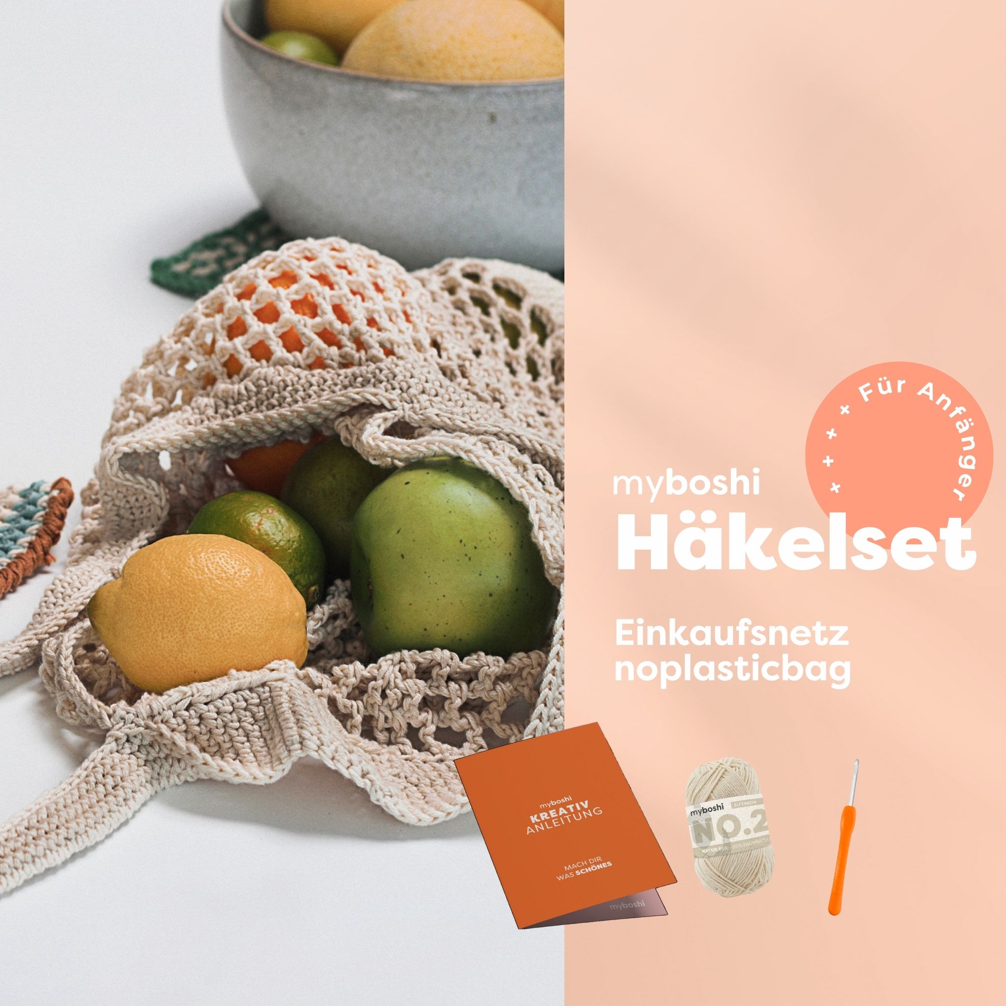 Die Wolle besteht aus 85% Baumwolle und 15% Kapok - vegan, atmungsaktiv und hautfreundlich. Perfekt für die Tasche 'Helena', die du mit der beiliegenden Anleitung leicht häkeln kannst. Auch für Häkelanfänger super geeignet!