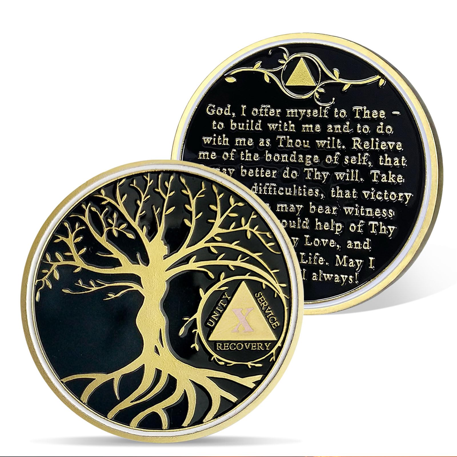 Begleite deinen Genesungsweg mit diesen inspirierenden Nüchternheits-Münzen! Mit schönem Schmetterlings- und Baum-des-Lebens-Design. Jede Münze hat ca. 3,7 cm Durchmesser und kommt mit schützender PP-Hülle. Das Gelassenheitsgebet auf der Rückseite gibt Kraft für schwierige Momente. Perfekt um Meilensteine zu feiern oder als tägliche Erinnerung. Aus vergoldeter Beschichtung, hochwertig verarbeitet. Ideal als Geschenk für sich selbst oder andere auf dem Genesungsweg. Ob für AA, NA oder HA - diese Münzen symbolisieren Hoffnung und Neubeginn. Ein kleines Zeichen mit großer Bedeutung!