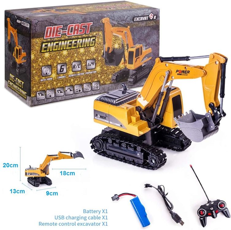 Achtung, kleine Baustellen-Fans! Dieser ferngesteuerte Bagger von NEXBOX bringt echten Bagger-Spaß nach Hause. Mit robuster Metallschaufel und 680° Drehung meistert er jeden Einsatz. Die Raupenketten bewältigen selbst unebenes Gelände wie Sand, Teppich oder Garten. Coole Soundeffekte und LED-Lichter machen das Spielerlebnis komplett. Mit 2,4GHz Fernsteuerung können mehrere Kinder gleichzeitig baggern. Perfektes Geschenk für Jungen ab 6 Jahren! • Metallschaufel • 680° Drehung • 2,4GHz Fernsteuerung • Sound- und Lichteffekte • 1200mAh Akku • Ladezeit: 2-3 Stunden • Spielzeit: ca. 45 Minuten • Für Indoor und Outdoor • Altersempfehlung: 6-12 Jahre • Inkl. Ladekabel • Maße: 35x15x20cm