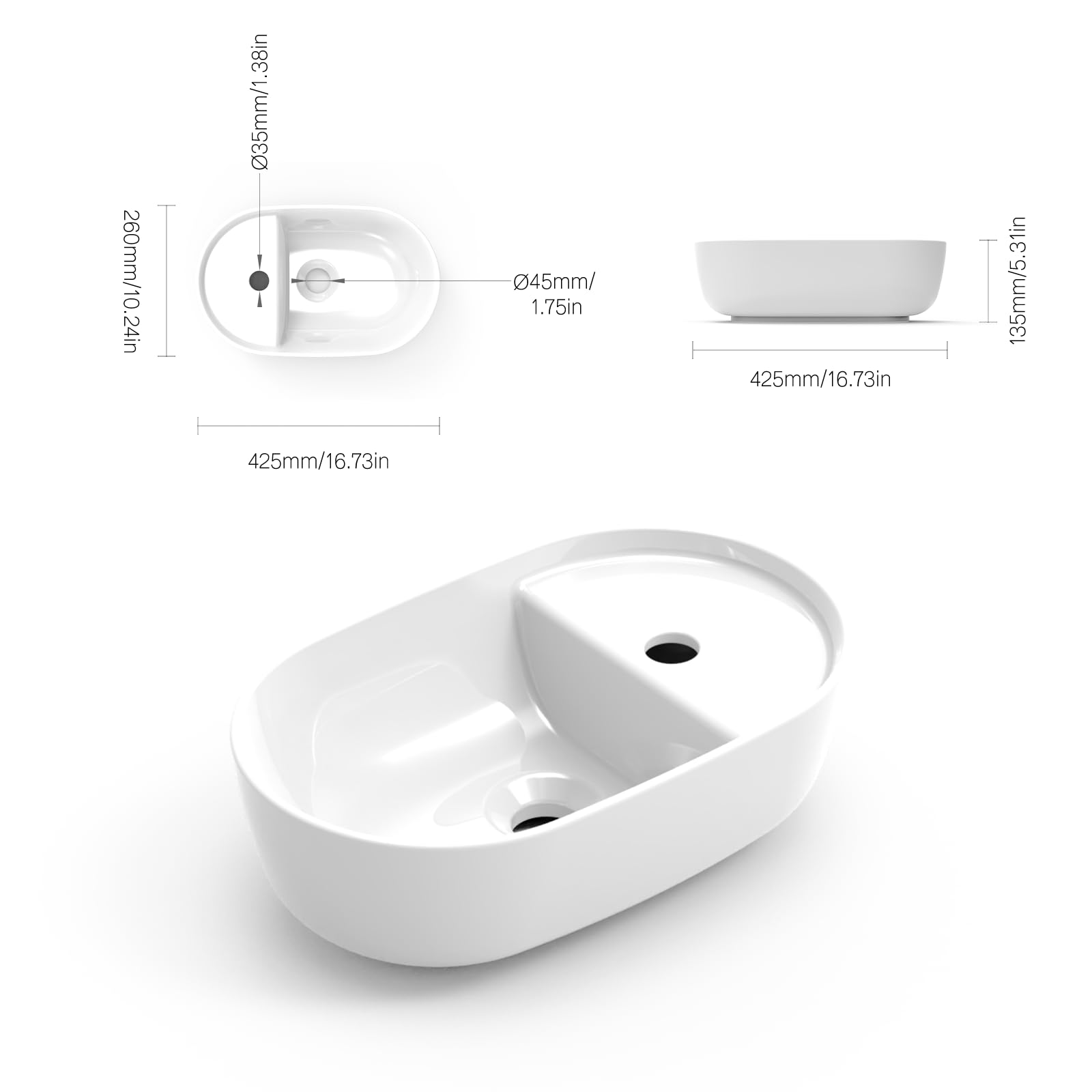 Das schlanke Design sieht einfach elegant aus und die ovale Form bietet viel Platz zum Händewaschen. Einfach zu installieren und jahrelang schön - dein Badezimmer wird sich freuen!