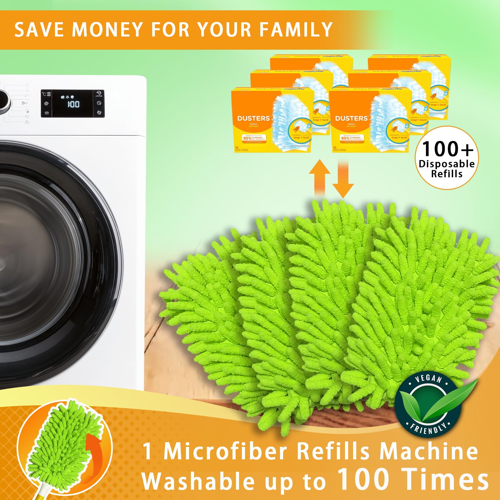 Hey, diese Staubwedel-Nachfüllungen von Yicotira sind der Hit für alle, die keine Lust auf ständiges Nachkaufen haben! Kompatibel mit MR.SIGA und OXO Staubwedeln - einfach draufstecken und losstauben. Aus hochwertigem, elektrostatischem Mikrofaser-Chenille, das den Staub magisch anzieht und festhält. Das Beste: Sie sind waschbar und halten bis zu 100 Mal! Kein Flusen mehr, kein ständiger Neukauf. Perfekt für Möbel, Jalousien, Ventilatoren und alle Ecken, die normalerweise schwer zu erreichen sind. Einfach praktisch und umweltschonend!
