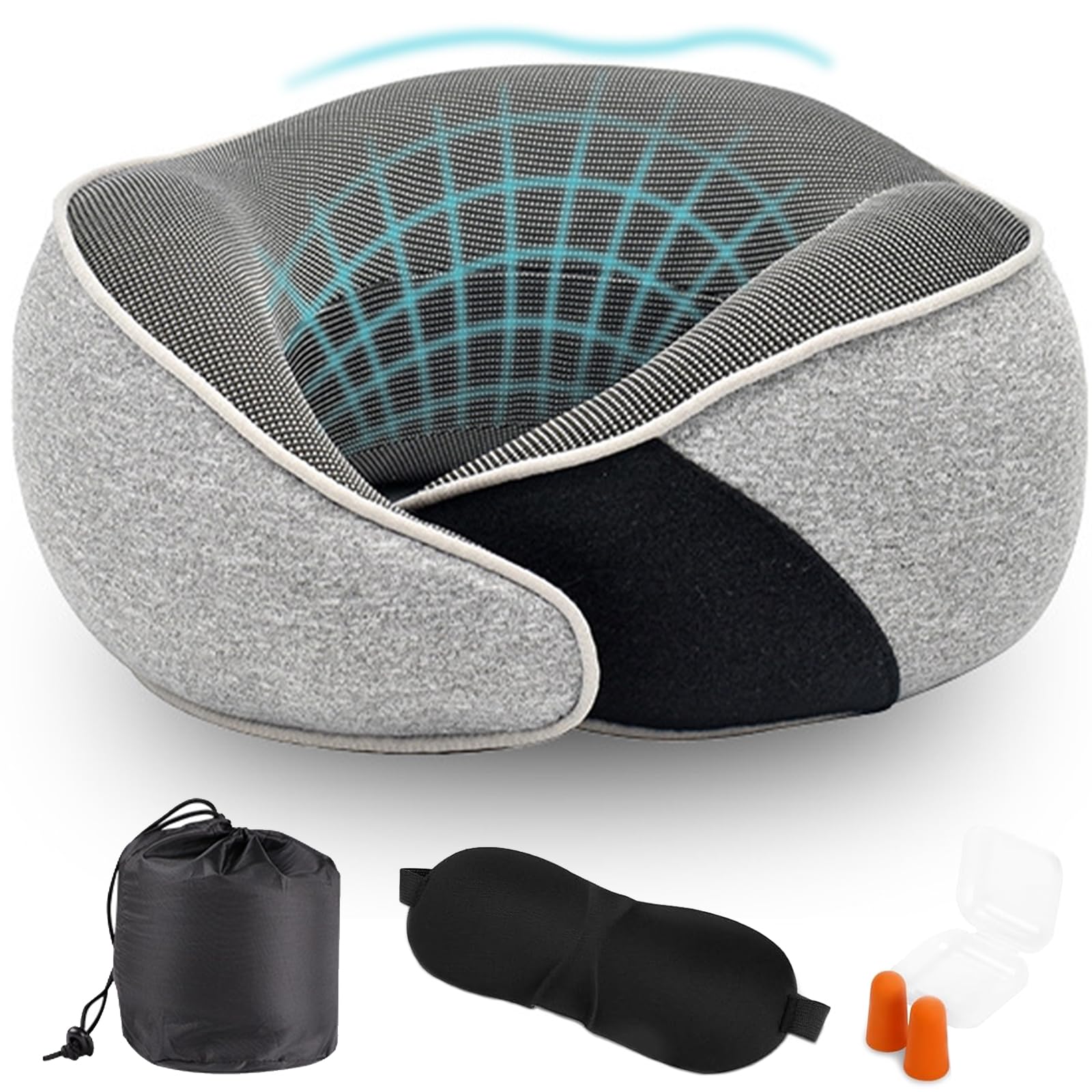 TZEKING Nackenkissen Reise Set - Memory Foam Mit Augenmaske & Ohrstöpseln