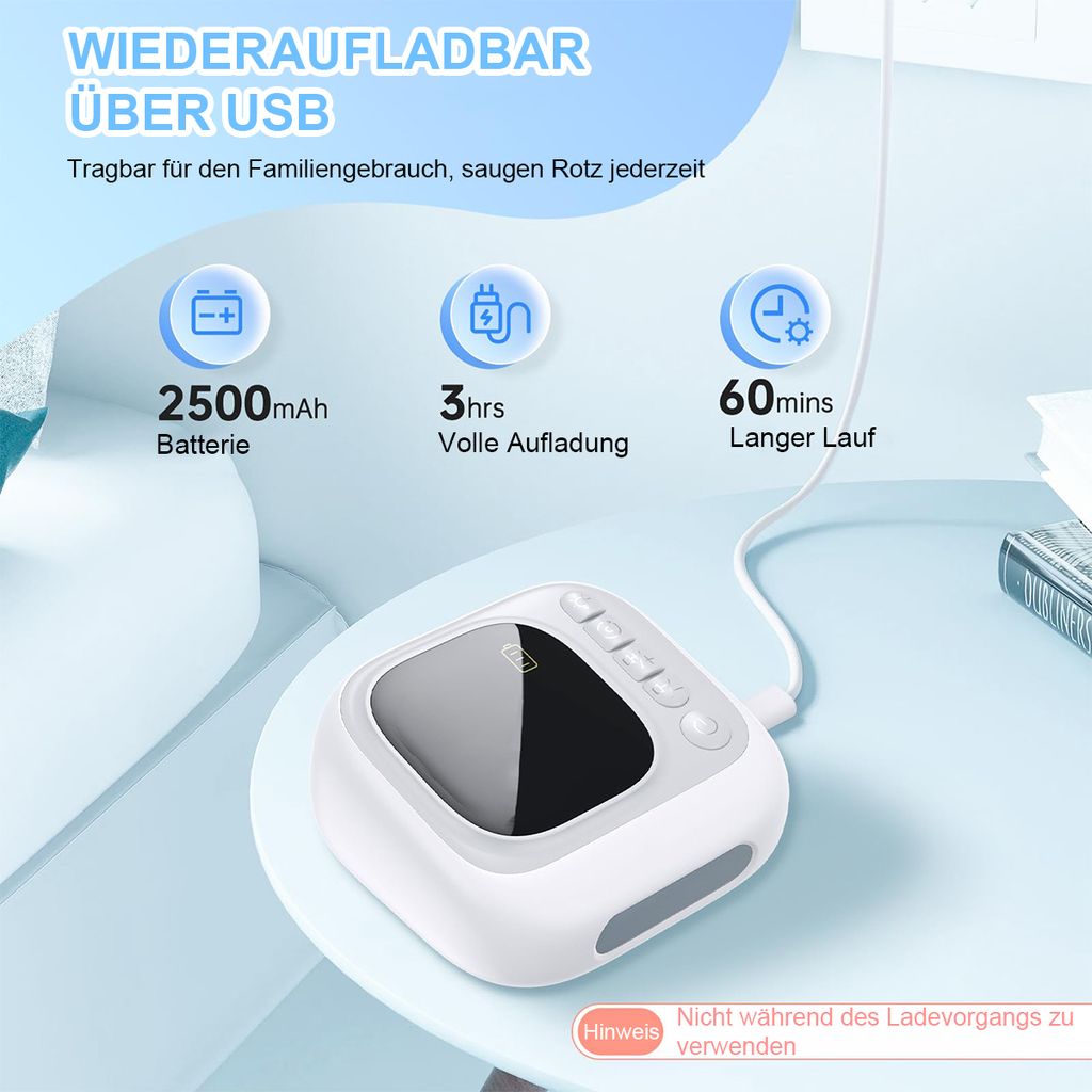 Endlich wieder ruhige Nächte für Baby und Eltern! Dieser elektrische Nasensauger macht das lästige Nasenreinigen so viel einfacher und angenehmer - für beide Seiten!