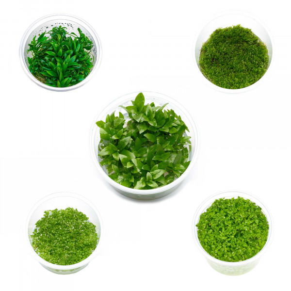 Hey Aquarium-Fans! Dieses NatureHolic Pflanzen-Set ist der absolute Algenkiller für dein Becken! Du kriegst 6 verschiedene Wasserpflanzen - 5 InVitro-Pflanzen und eine süße Mooskugel. Das Beste: Alle sind steril gezüchtet, also komplett frei von Algen, Schnecken und Schadstoffen. Perfekt also für empfindliche Garnelen und Nano-Fische! Die Pflanzen wachsen super schnell und verdrängen damit lästige Algen von ganz alleine. Von frischem Grün über Orange bis Violett - die Farbvielfalt macht dein Aquarium zum echten Hingucker. Mit den verschiedenen Höhen kannst du Vorder-, Mittel- und Hintergrund gestalten und tolle Aquascapes kreieren. Einfach unter fließendem Wasser abspülen, einpflanzen und schon entsteht ein gesunder, natürlicher Lebensraum. Ob für Einsteiger oder Profis - dieses Set macht dein Aquarium nicht nur schöner, sondern auch algenfreier! Und das ganz ohne Chemie. Einfach klasse für alle, die ein pflegeleichtes und gesundes Becken wollen.