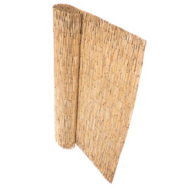 Die Matte besteht aus hellem, naturfarbenem Schilfrohr, das mit verzinktem Eisendraht zu einer stabilen Matte verwoben wurde. Die Stärke beträgt 5-10 mm - robust genug für verschiedene Einsatzzwecke.