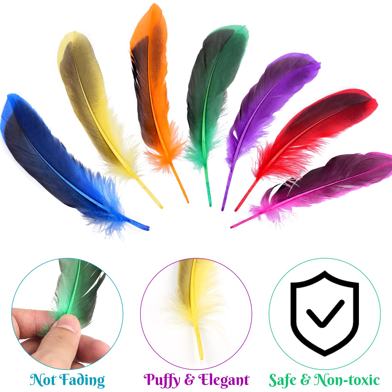 Wow, 400 bunte Federn in einem Set! Das ist ja der Traum jedes Bastelfans. Die natürlichen Gänsefedern sind zwischen 5 und 12cm lang und kommen in allen möglichen fröhlichen Farben daher. Perfekt für Traumfänger, Ohrringe, Haarschmuck oder tolle Deko für Hochzeiten und Partys. Die Federn wurden professionell gereinigt und desodoriert - also absolut sauber und sicher. Aber Achtung: Federn sind empfindlich! Bitte nicht in die Nähe von Kerzen oder Heißklebepistolen halten, denn die gehen schnell in Flammen auf. Auch Wasser ist nicht ihr Freund - da kräuseln sie sich und verlieren ihre schöne Farbe. Am besten lagerst du sie in einer Box oder hängend, dann bleiben sie schön fluffig. Für Kinder unter 3 Jahren sind die kleinen Federn leider nichts - Verschluckungsgefahr! Aber für alle anderen Bastelfreunde: Hier kommt garantiert keine Langeweile auf. Lass deiner Kreativität freien Lauf und gestalte einzigartige Kunstwerke!