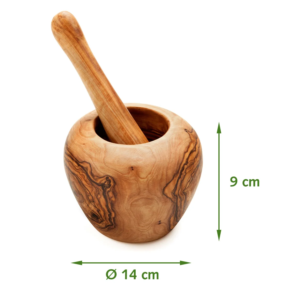 Echt natürlich! Dieser Mörser aus Olivenholz ist ein absolutes Unikat - handgefertigt aus nachhaltigem Olivenholz mit wunderschöner Maserung. Ca. 14cm groß, perfekt für Kräuter, Gewürze, Knoblauch oder Pesto. Das dichte Holz ist von Natur aus antibakteriell und extrem langlebig. Jedes Stück ein Einzelstück mit individueller Maserung. Mit Pflanzenöl veredelt für optimalen Schutz. Ein super Geschenk für alle, die gerne kochen!
