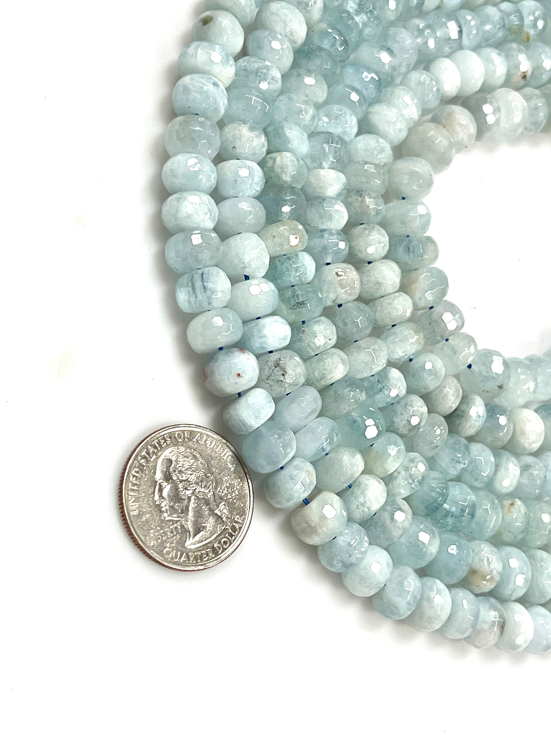 Diese Aquamarin-Perlen sind einfach wunderschön! Jede Perle hat 6mm Durchmesser und kommt auf einem 15 Zoll (ca. 38cm) langen Faden - insgesamt 65 Stück pro Strang. Da es sich um echte Natursteine handelt, ist jede Perle ein Unikat - mal etwas heller, mal etwas dunkler, manche mit kleinen natürlichen Einschlüssen. Das macht den Charm echter Steine aus! Perfekt für alle, die gerne selber Schmuck machen: Ob Halsketten, Armbänder, Ohrringe oder Yoga-Armbänder - mit diesen blau-grünen Perlen wird alles sofort zum Eyecatcher. Wir suchen immer die schönsten Steine für dich aus, und falls doch mal was nicht passt, hast du 90 Tage Umtauschrecht. Einfach die Perlen vom Faden nehmen und deiner Kreativität freien Lauf lassen - viel Spaß beim Basteln!