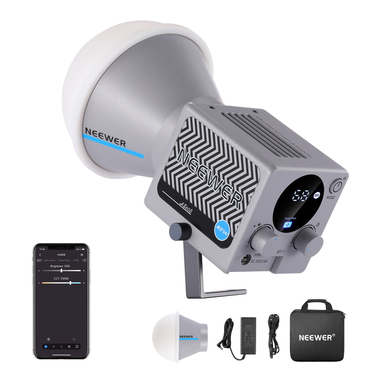 Professionelles Licht für deine Videos! Die Neewer HS60B ist eine kompakte 60W COB Lampe die in jede Hand passt. Farbtemperatur 2700K-6500K, dimmbar von 0-100%. Super Farbwiedergabe mit CRI97+. Steuerung per App oder direkt am Gerät. 12 Szeneneffekte für kreative Aufnahmen. Kann mit Netzteil oder Powerbank betrieben werden. Integrierter Lüfter verhindert Überhitzung. Perfekt für YouTube, Streaming, Podcasts, Hochzeiten und Fotoshootings. Mit Reflektor und Diffusor - alles dabei für perfektes Licht!