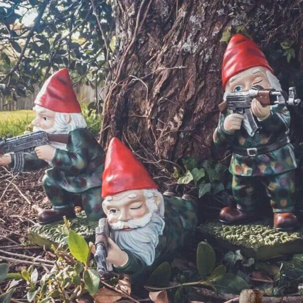 Alter, diese Gartenzwerge sind ja mal richtig frech! Statt netter Gärtnerchen hast du hier ne komplette Armee für deinen Garten. Die nezababy Militär-Zwerge mit ihren Waffen bringen richtig Stimmung in deine Outdoor-Deko!