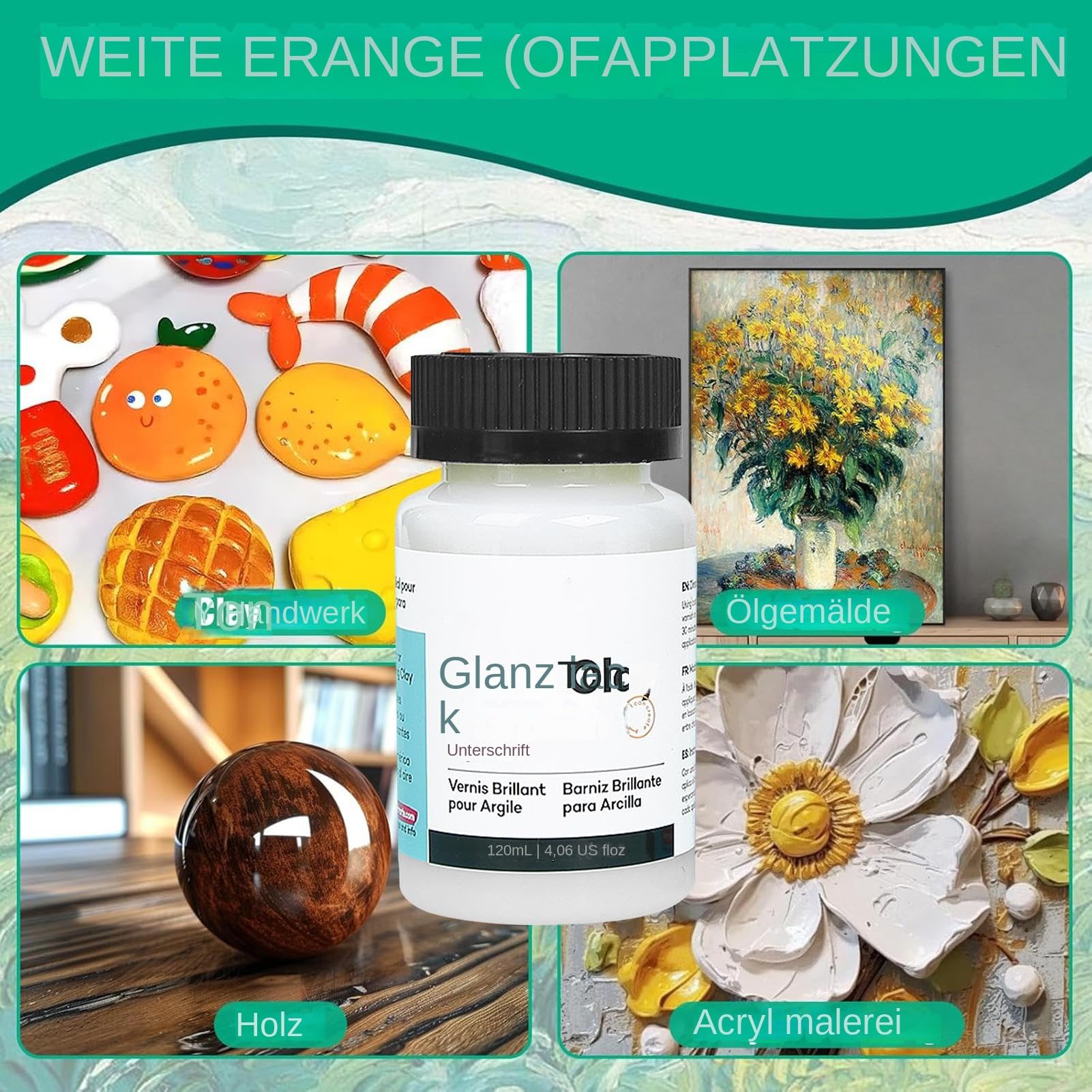 Deine Kunstwerke verdienen den besten Schutz! Dieser Nicpro Klarlack trocknet an der Luft und verleiht deinen Ton- und Acryl-Kreationen einen wunderschönen Hochglanz. Einfach mit weichem Pinsel 2-3 dünne Schichten auftragen - nach ca. 1 Stunde ist jede Schicht trocken. Danach sind deine Werke wasserfest, kratzresistent und vor Vergilbung geschützt. Ungiftige Formel - sicher für Jugendliche und Erwachsene. Perfekt für lufttrocknenden Ton, Polymerton, Gips, Holz, Metall und mehr. Aber Achtung: Nicht für Lebensmittel geeignet und nicht spülmaschinenfest. Mach deine Kunstwerke langlebig und strahlend schön!