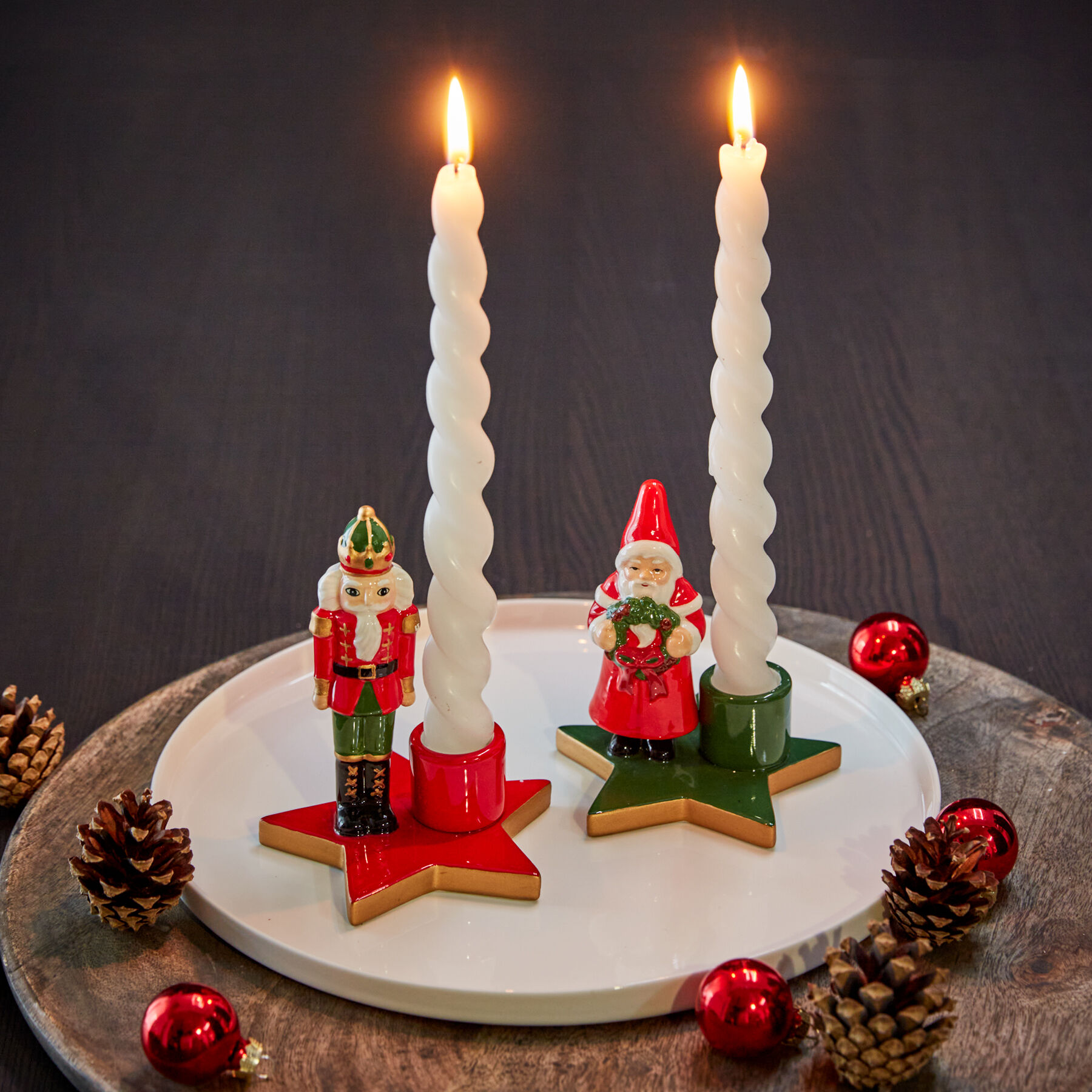Weihnachtsstimmung garantiert! Dieses süße Set mit 2 Nussknacker-Kerzenhaltern von znewlook macht deine Weihnachtsdekoration komplett. Jede Figur ist 12,7 cm hoch und hat einen Kerzenhalter mit 4,5 cm Durchmesser. Aus robustem Harz gemacht - rostet nicht und geht so schnell nicht kaputt. Wunderschön bunt bedruckt mit traditionellen deutschen Nussknacker-Motiven in Rot, Grün, Weiß und Gold. Perfekt für den Kaminsims, Weihnachtstisch oder neben den Christbaum. Schaffen eine total gemütliche Atmosphäre und sind auch ein tolles Geschenk zur Weihnachtszeit. Mach dein Zuhause weihnachtlich mit diesen niedlichen Figuren!