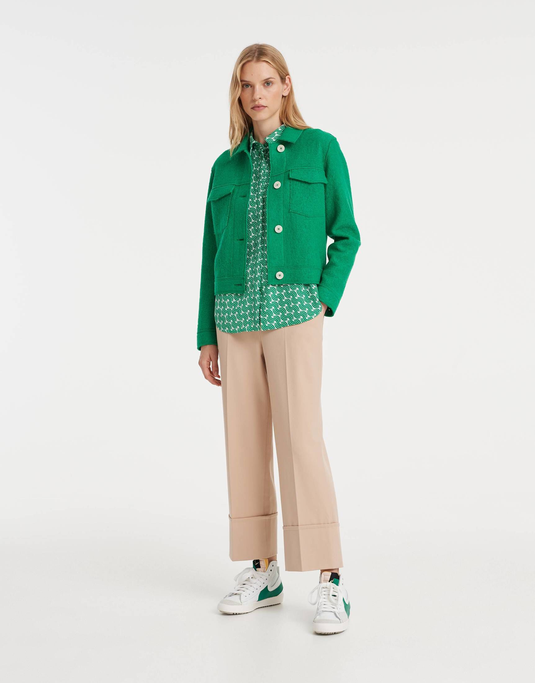 Die OPUS HELISA Jacke ist dein neuer Liebling für die kühleren Tage! Aus weichem Wollmaterial sitzt sie perfekt und wärmt angenehm. Der kleine Stehkragen sieht nicht nur stylisch aus, sondern schützt auch vor Zug. Mit praktischem Zipper und aufgesetzten Fronttaschen hast du alles griffbereit. Die Innenseite ist heller abgesetzt - ein schönes Detail das Qualität verrät. Bei Größe 36 hat sie eine Rückenlänge von ca. 61cm und eine Rückenbreite von 50cm. Perfekt also für die Übergangszeit oder unter einer dickeren Jacke im Winter. Ob zum Büro, zum Stadtbummel oder für gemütliche Abende - diese Jacke passt immer. Sieht aus wie von der Stange, fühlt sich an wie maßgeschneidert. Einfach anziehen und wohlfühlen!