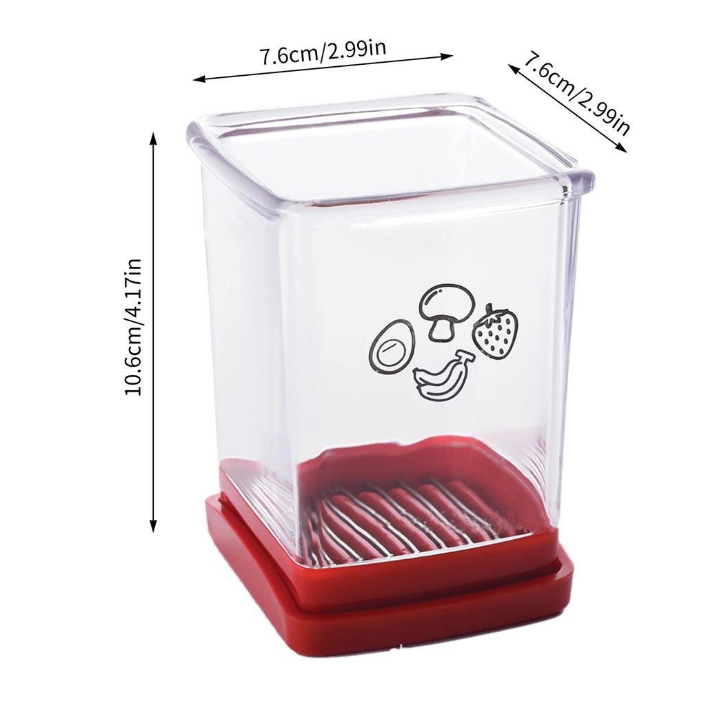Schneiden war noch nie so einfach! Diese 2 Tassenschneider sind echte Küchen-Helferlein. Aus Edelstahl und Kunststoff, super praktisch für Obst und Gemüse. Einfach die Erdbeere, Banane, Gurke oder was auch immer du schneiden willst in den Schneider stecken, drücken - und schon hast du perfekte, gleichmäßige Scheiben! Viel besser als mit dem Messer und vor allem sicherer. Maße: 8,6cm hoch, 7x6cm Auslass. Passt in jede Schublade und spart enorm Zeit in der Küche. Ideal für Salat-Vorbereitung, Obstteller oder wenn du mal schnell was fürs Essen schneiden musst. Auch super für Restaurants oder Catering. Mach dir das Leben leichter - mit diesen Schneidehilfen wird Kochen zum Kinderspiel!
