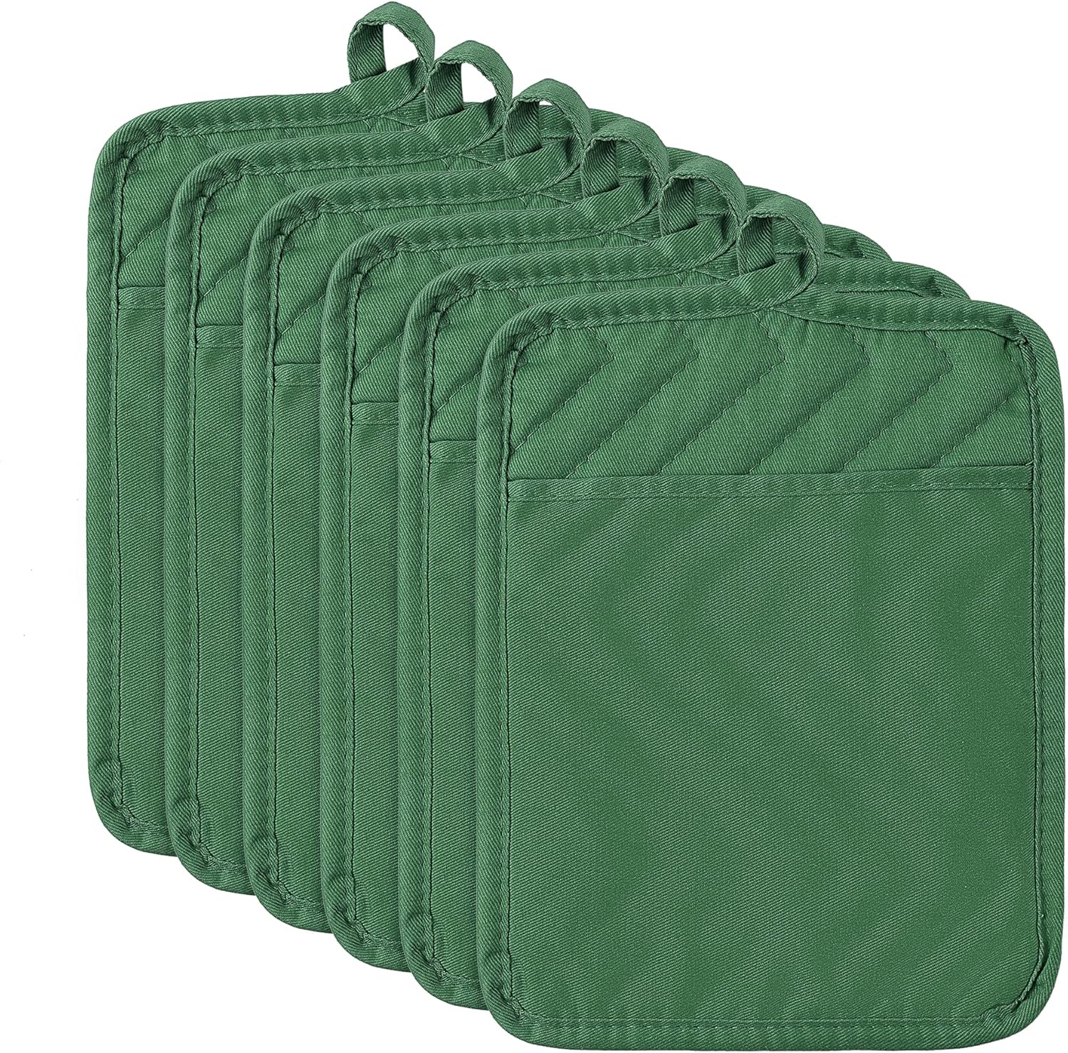 Endlich Ordnung und Sicherheit in deiner Küche! Dieses süße Set mit 2 Topflappen im Lavendelblüten-Design ist nicht nur hübsch anzusehen, sondern auch super praktisch. Jeder Topflappen misst 20,3 x 20,3 cm und hat eine praktische Tasche - so kannst du heiße Töpfe, Pfannen, Aufläufe und Schüsseln sicher aus dem Ofen heben oder auf dem Tisch abstellen. Das flexible Material gibt dir einen festen Halt, ohne dass du dir Sorgen um Verbrennungen machen musst. Die silberne Innenauskleidung eignet sich perfekt als Untersetzer, um deine Arbeitsplatten vor Hitze zu schützen. Mit den praktischen Aufhängeschlaufen kannst du die Topflappen platzsparend an Haken oder Schranktüren aufhängen - so hast du sie immer griffbereit und sparst wertvollen Stauraum. Das violette Design mit den zarten Lavendelblüten bringt einen Hauch von Frühling in deine Küche. Ein ideales Geschenk für alle, die gerne kochen und backen - ob zu Muttertag, Geburtstag, Weihnachten oder einfach als kleine Aufmerksamkeit für deine Liebsten. Praktisch, sicher und dazu noch richtig hübsch - was will man mehr?