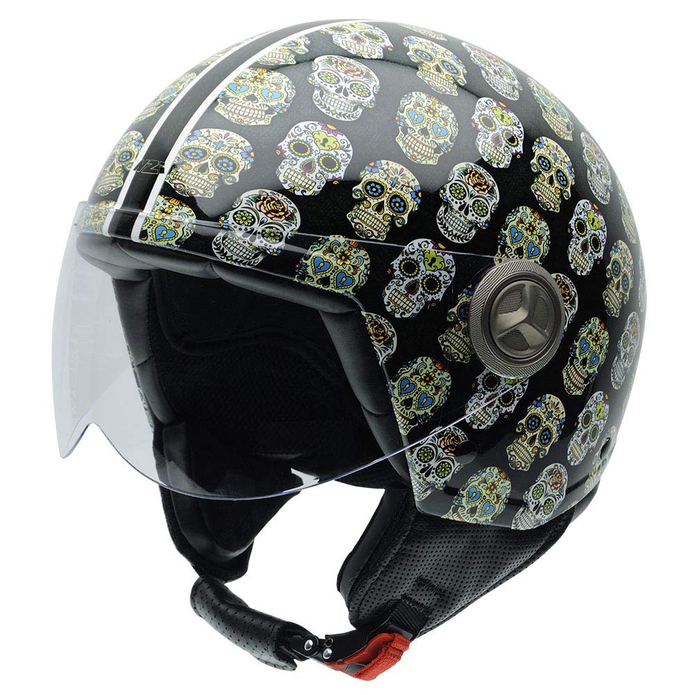 Suchst du einen lässigen Motorradhelm, der nicht nur sicher ist, sondern auch richtig stylisch aussieht? Der NZI Zeta mit seinem coolen 'Love&Peace' Design in Matt ist genau das Richtige für dich!