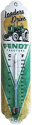 Für echte Fendt-Fans und Traktor-Liebhaber! Dieses offizielle Lizenzprodukt bringt Landtechnik-Flair in dein Zuhause. Das Retro-Thermometer im klassischen Fendt-Design wird nachhaltig in Deutschland produziert - mit viel Handarbeit für höchste Qualität. Das 7 x 28 cm große Thermometer aus robustem Stahlblech überzeugt mit brilliantem Druck und plastischer Wölbung für einen edlen Gesamteindruck. Die Skala ist in Celsius und Fahrenheit gut ablesbar - auf einen Blick siehst du die aktuelle Raumtemperatur. Mit den bereits vorgebohrten Löchern ist die Montage an der Wand ganz einfach - ob mit Nägeln oder Klebepunkten. Und das Beste: Es benötigt weder Batterien noch Strom - einfach aufhängen und es funktioniert zuverlässig! Das Hologramm auf der Rückseite bestätigt die 100%ige Originalität. 'Designed in Berlin' - Made in Germany - das steht für Qualität und Langlebigkeit. Ein perfektes Geschenk für Fendt-Enthusiasten, Landwirte oder einfach jeden, der sich für Traktoren begeistert. Ob im Wohnzimmer, Büro oder der Werkstatt - dieses Thermometer ist ein echter Hingucker! Format: 7x28cm, Material: Stahlblech, Montage: vorgebohrte Löcher, Betrieb: vollständig analog.