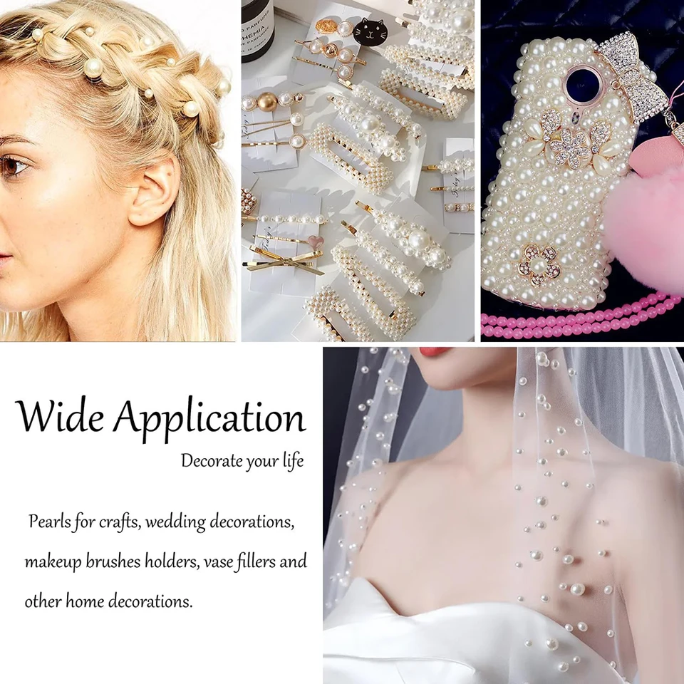 Die Perlen sind aus hochwertigem Acryl und sehen fast aus wie echte Perlen. Jede Perle ist sorgfältig poliert für gleichmäßige Größe und schönen Glanz. Die glatte, glänzende Oberfläche reflektiert das Licht wunderschön.