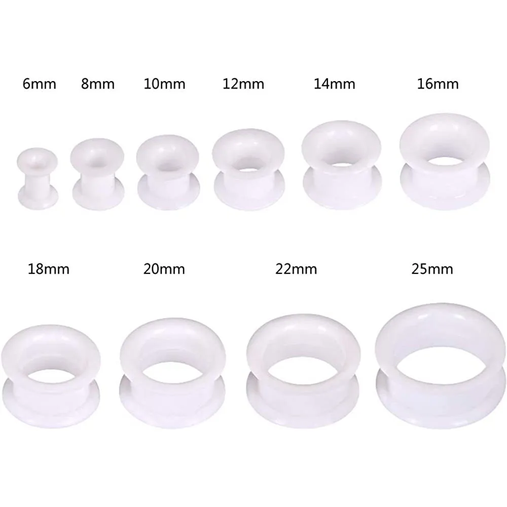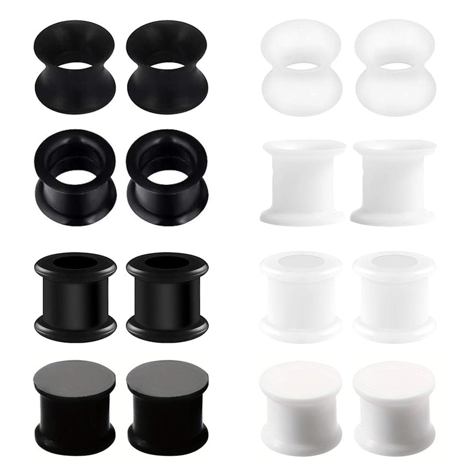 Wow, diese Silikon-Ohr-Tunnel sind einfach mega bequem! Du kriegst 4 Paar in Schwarz und Weiß - die klassischen Farben passen zu jedem Outfit. Aus superweichem, flexiblem Silikon gefertigt, das sich angenehm anfühlt und Schmerzen beim Dehnen reduziert. Erhältlich in verschiedenen Stärken von 3 mm (8g) bis 25 mm (1 Zoll) - also für jeden Dehnungsgrad etwas dabei. Die doppelt ausgestellten Tunnels sind leicht zu reinigen und zu tragen. Perfekt für den Alltag, da sie leicht sind und nicht drücken. Achte aber darauf, sie vor Chemikalien, Kosmetika und Stößen zu schützen. Super als Geschenk für Freunde oder dich selbst zu besonderen Anlässen wie Halloween, Weihnachten oder Geburtstagen. Wenn du also nach bequemen, hochwertigen Ohr-Tunnels suchst die den ganzen Tag angenehm zu tragen sind, bist du hier genau richtig. Einfach die richtige Größe wählen und deine Ohrläppchen verwöhnen!