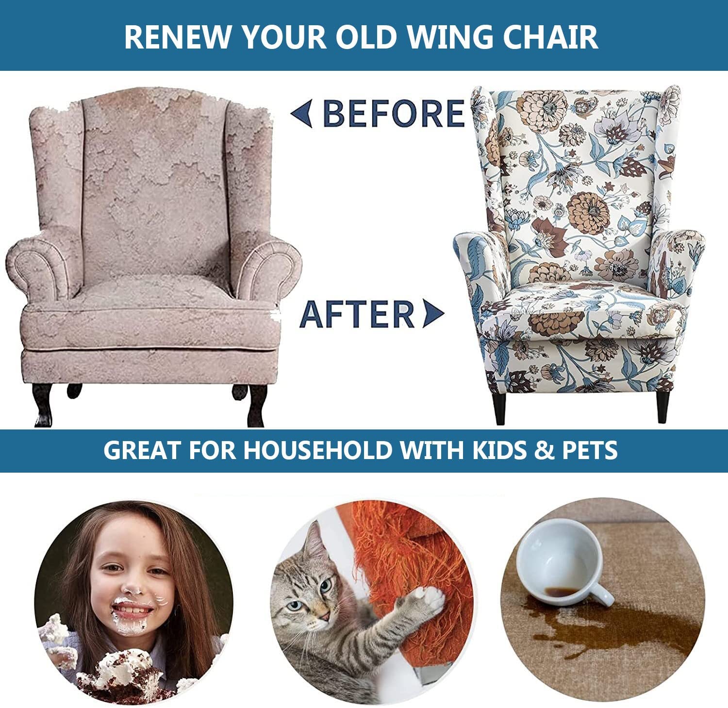 2-teiliger Ohrensessel Bezug - Stretch Schonbezug Mit Ottomane Abdeckung