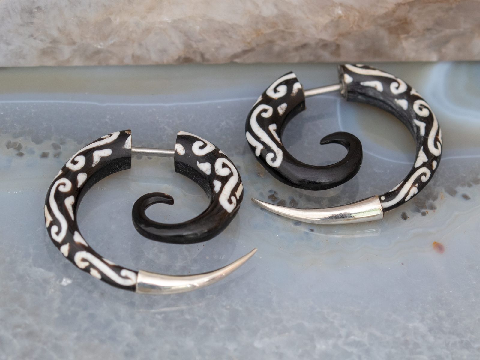 Stylischer Look ohne echtes Piercing! Diese handgefertigten Fake Piercings aus echtem Büffelhorn sehen ultra-authentisch aus. Mit 25mm Durchmesser und 1,2mm Stiftstärke - passen in normale Ohrlöcher. Hochwertiger Schraubverschluß aus 925er Sterling Silber - keine billige Steckverbindung! Jedes Stück ein Unikat durch natürliche Materialvariationen. Aus 316L Piercingstahl und organischem Büffelhorn - hautfreundlich und stylisch. Perfekt für besondere Anlässe oder täglichen Tragekomfort. Sieht aus wie echt - ist aber viel unkomplizierter!