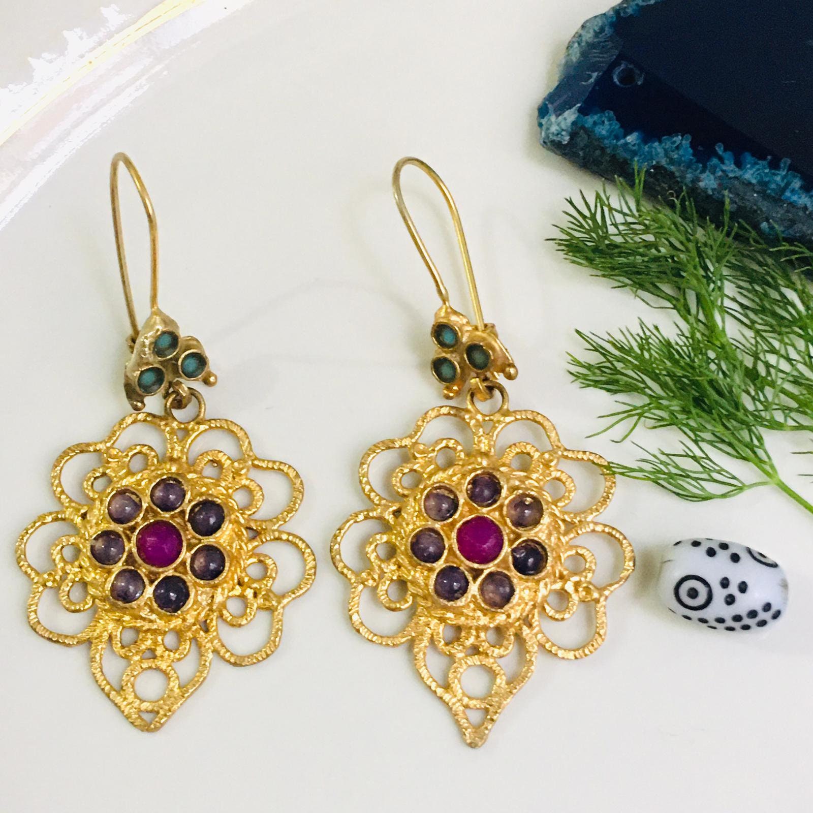 Diese wunderschönen Jhumka-Ohrringe bringen indischen Flair in deinen Alltag! Die traditionellen, hängenden Ohrringe im Vintage-Gold-Design sind perfekt für besondere Anlässe wie Hochzeiten, Festivals oder romantische Dates. Leicht und bequem zu tragen, mit feinen Details, die jede Gesichtsform schmeicheln. Ideal zum Kombinieren mit Saris, Kurtas oder auch westlicher Kleidung. Ein tolles Geschenk für Geburtstage, Valentinstag, Weihnachten oder Muttertag - symbolisiert Nachdenklichkeit durch zeitlose Handwerkskunst. Für Fragen steht unser Support-Team innerhalb von 24 Stunden zur Verfügung. Tauche ein in die Welt des traditionellen indischen Schmucks und verleihe deinem Style eine besondere Note!