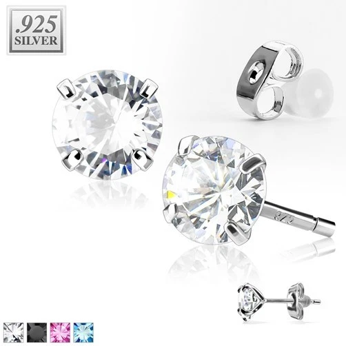 • EYS JEWELRY Zirkonia Ohrstecker 6mm - 925 Sterling Silber Rund Ohrringe In 8 Farben