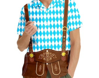Macht richtig was her auf dem nächsten Oktoberfest! Dieses komplette Trachten-Set vereint alle klassischen Elemente der bayerischen Tradition. Die dunkle Lederhose aus strapazierfähigem Kunstleder mit Metall-Schnallen und Stickereien sieht aus wie echt. Dazu das karierte Hemd aus atmungsaktivem Material, das auch bei lebhaften Feiern für Frische sorgt. Perfekt nicht nur fürs Oktoberfest, sondern auch für Mottopartys, Karneval oder Halloween. Das Set ist flexibel kombinierbar - mit T-Shirt darunter für lässigen Style oder mit Weste für den traditionellen Look. Einfach die Größentabelle checken, denn bei kräftigerer Statur besser eine Größe größer wählen. Damit wirst du zum Blickfang auf jedem Fest!