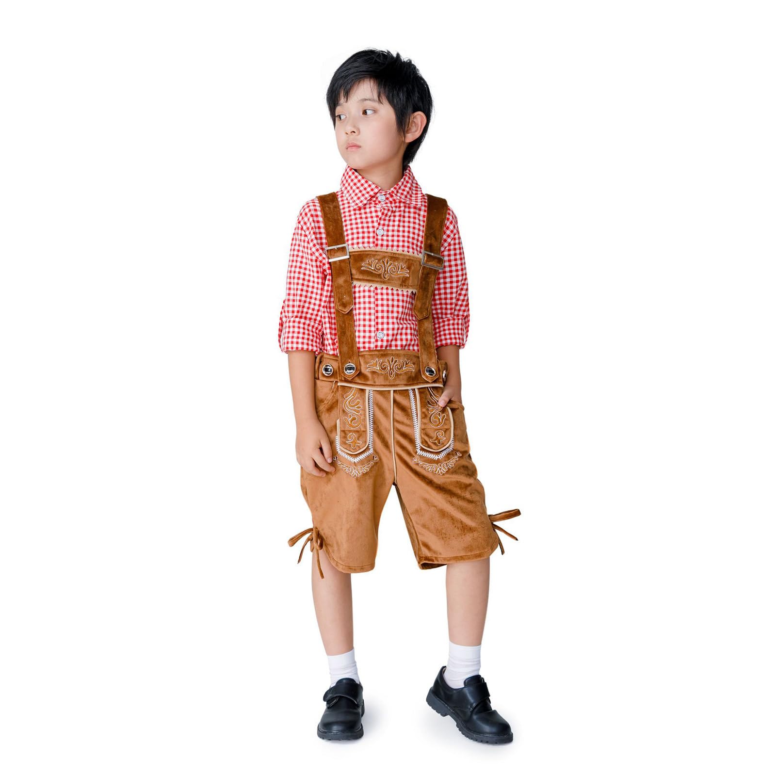 Dirndl und Gwand - dein Kind ist bereit fürs Oktoberfest! Dieses süße 2-teilige Trachtenset für Jungen besteht aus einem karierten Kurzarm-Hemd und einer traditionellen Lederhose mit Hosenträgern. Die Hose in antikbraunem Vintage-Look ist mehrfach verstellbar und wächst praktisch mit. Das Hemd mit Reverskragen und dekorativen Knöpfen sieht echt authentisch aus. Alles aus hochwertigem Polyester, der sich weich anfühlt und nicht auf der Haut reibt. Klettverschluss an der Vorderseite macht das Anziehen zum Kinderspiel. Seitentaschen bieten Platz für kleine Schätze. Perfekt nicht nur fürs Oktoberfest, sondern auch für Karneval, Themenpartys, Cosplay oder Fotoshootings. Dein kleiner Bub wird damit zum Hit auf jedem Fest! Einfach anziehen und schon ist die bayrische Stimmung da. Achtung: Falls auf den Fotos ein Hut zu sehen ist, ist dieser nicht im Lieferumfang enthalten - nur Hemd und Hose.