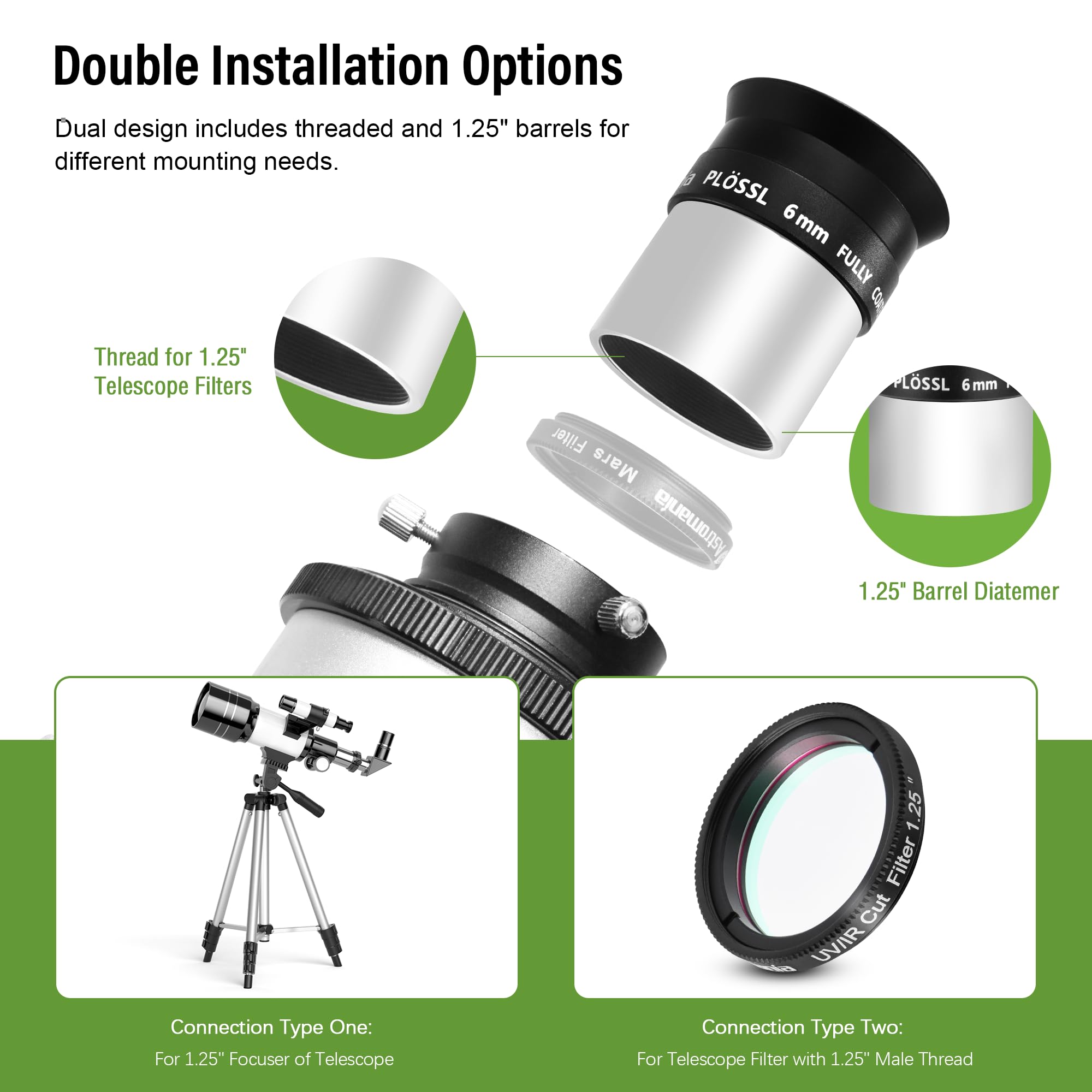 Entdecke die Wunder des Nachthimmels mit diesem hochwertigen 25mm Plossl Okular! Mit 1,25 Zoll Anschluss passt es perfekt zu den meisten Teleskopen - egal ob Spiegel- oder Linsenteleskop. Die vollständig beschichteten Linsen aus optischem Glas sorgen für maximale Helligkeit und gestochen scharfe Bilder. \\n\\nPerfekt für die Beobachtung von Mondkratern, Planeten oder Sternhaufen. Das weite Sichtfeld macht das Auffinden von Himmelsobjekten super einfach, und die schwarze Innenbeschichtung reduziert störende Reflexe für besseren Kontrast. Einfach ins Teleskop stecken und staunen! \\n\\nOb du Anfänger oder erfahrener Hobby-Astronom bist - dieses Okular ist ein echter Allrounder. Mit nur 59g ist es leicht, aber trotzdem robust verarbeitet. Wenn du also dein Teleskop aufrüsten willst oder ein zuverlässiges Standard-Okular suchst - hier wirst du fündig. Die Weiten des Universums warten darauf, von dir entdeckt zu werden!