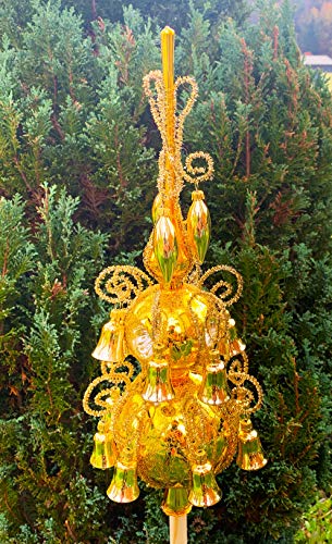 Lauschaer Christbaumspitze Old Germany - 35cm Gold Mit Glöckchen