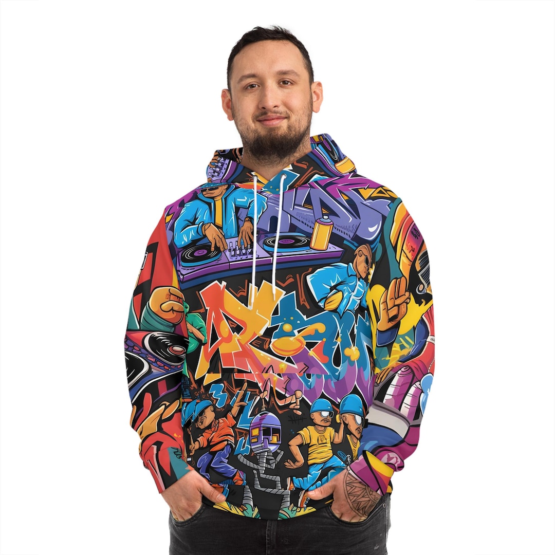 Total retro! Dieser Hoodie bringt den echten 80er/90er Jahre Vibe zurück. Perfekt für alle Hip Hop-Fans, Breakdancer und Graffiti-Liebhaber. Das Design ist einfach ikonisch - da wirst du sicher Komplimente kassieren. Super als Geschenk für Mama, Papa, Geschwister oder Freunde. Egal ob Weihnachten, Geburtstag oder einfach so - kommt immer gut an. Der Hoodie ist aus festem 8.5 oz Material und hat einen klassischen Schnitt. Doppelt genähter Saum für extra Langlebigkeit. Für die nächste 80er Party oder einfach nur für den coolen Alltagslook. Mach dich bereit für den Old School Flair!