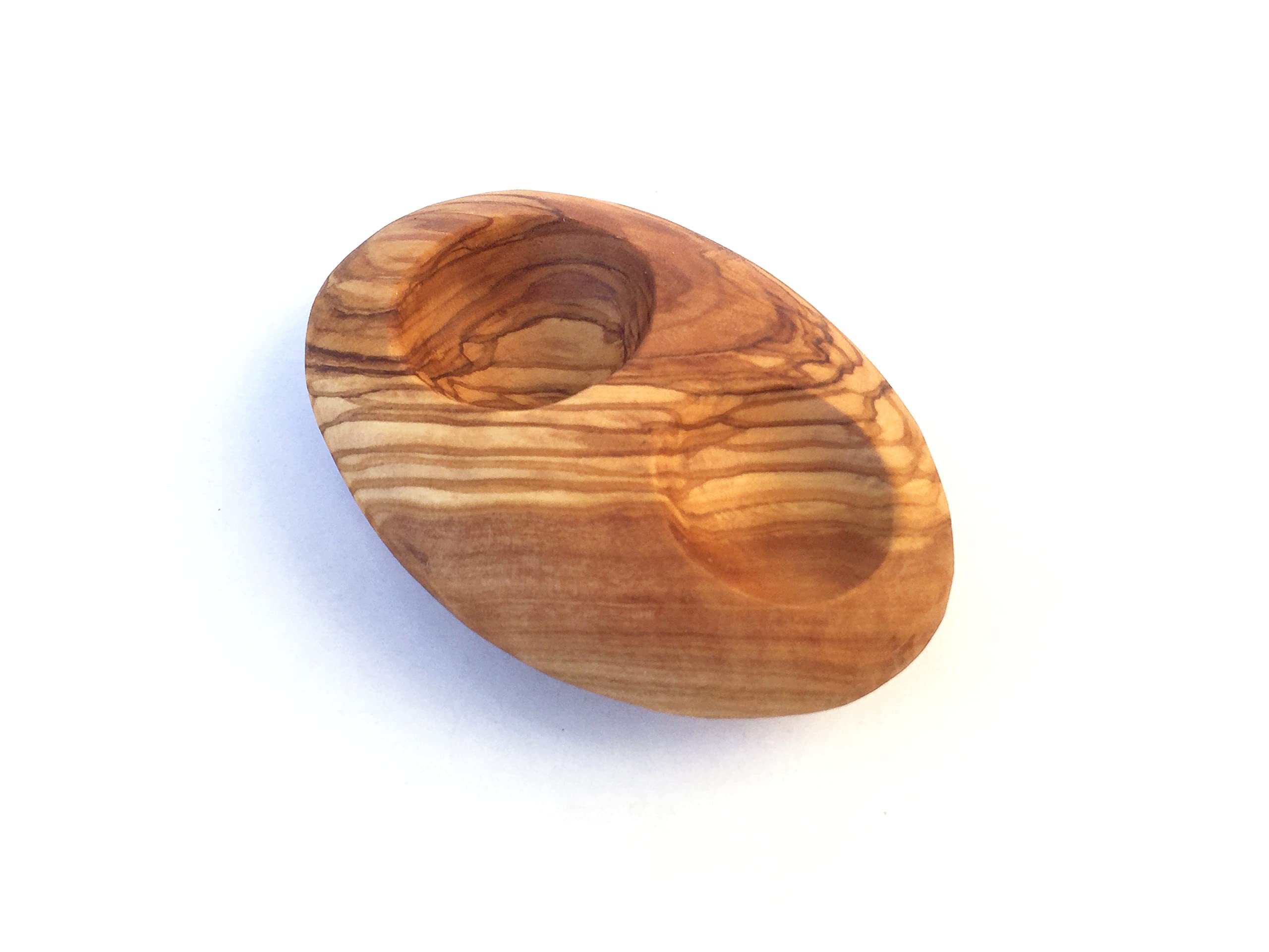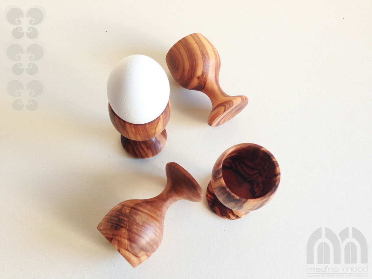 Frühstück mal anders - mit diesem wunderschönen Eierhalter aus 100% massivem Olivenholz! Jedes Stück ist ein Unikat, denn es wird in Handarbeit hergestellt. Der künstlerisch begabte Handwerker hat sich richtig Mühe gegeben, und das sieht man! Die einzigartige rötlich-braune Maserung mit dem unregelmäßigen Faserverlauf macht jedes Exemplar zu etwas Besonderem. Auf deinem Frühstückstisch zaubert der Eierhalter sofort eine warme, mediterrane Atmosphäre - als wäre man gerade in Italien oder Griechenland! Die Maße von 5x5x2 cm sind perfekt für jedes Standard-Ei. Olivenholz hat tolle Eigenschaften: extrem dicht und hart, daher super langlebig. Es ist von Natur aus resistent gegen Kratzer, Insekten und Pilze - und sogar antibakteriell! Die Pflege ist denkbar einfach: Einfach per Hand mit Wasser und etwas Spülmittel reinigen, gut abtrocknen (damit das Holz keine Feuchtigkeit zieht) und ab und zu mit ein wenig Speiseöl einreiben. So bleibt die schöne Farbe und Maserung lange erhalten. Wichtig: Nicht in die Spülmaschine geben! Das wäre schade um das schöne Stück. Perfekt als Geschenk für alle, die Naturprodukte lieben - ob zum Geburtstag, zu Weihnachten oder zum Einzug. Einfach ein tolles Stück Natur für deinen Tisch, das gute Laune macht und jeden Morgen ein bisschen besonderer!