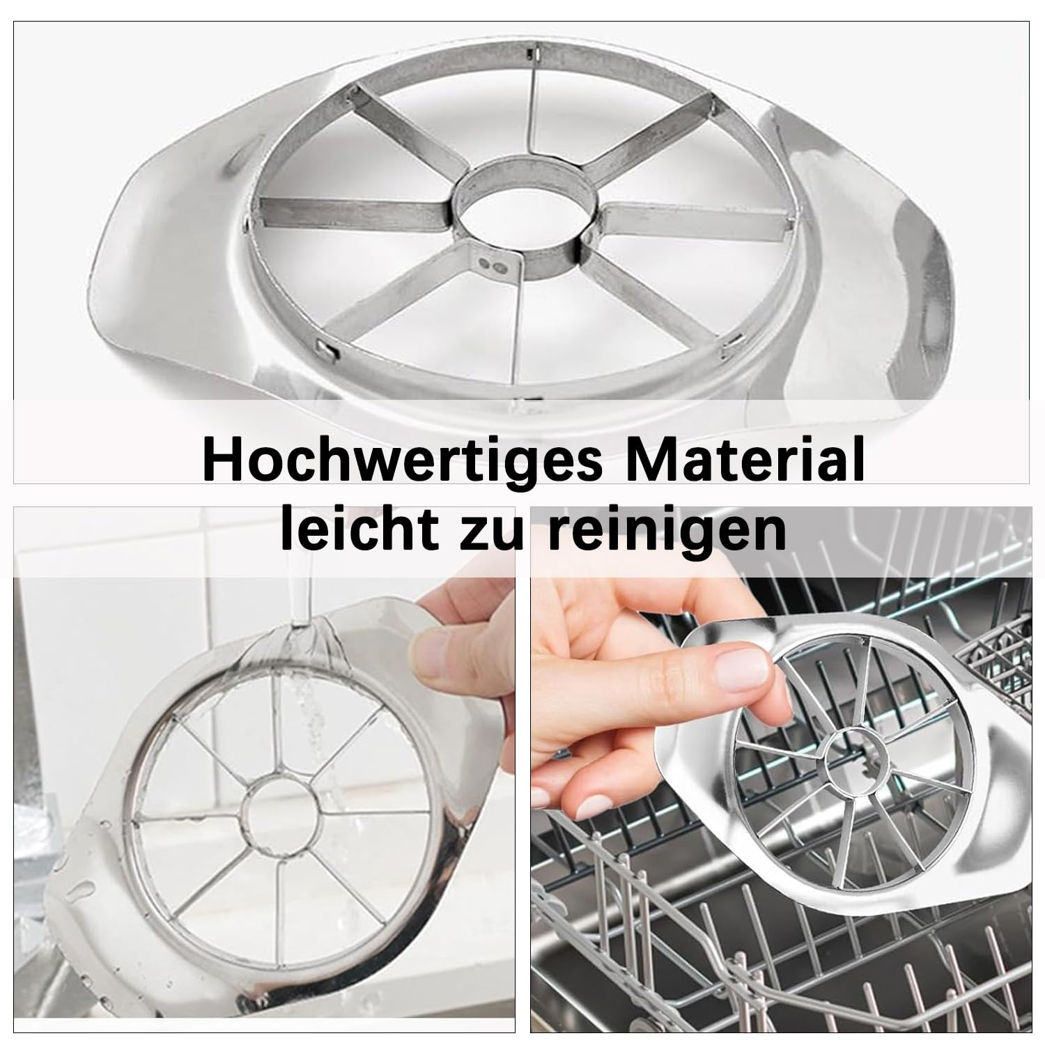 Wow, dieser Apfelschneider macht das Schneiden von Äpfeln zum Kinderspiel! Einfach den Apfel draufsetzen, kurz drücken - und schon hast du 8 perfekte, gleichmäßige Stücke ohne Kern. Die Edelstahl-Klinge ist super scharf und durchtrennt nicht nur Äpfel, sondern auch Birnen, Tomaten oder sogar Kartoffeln mühelos.