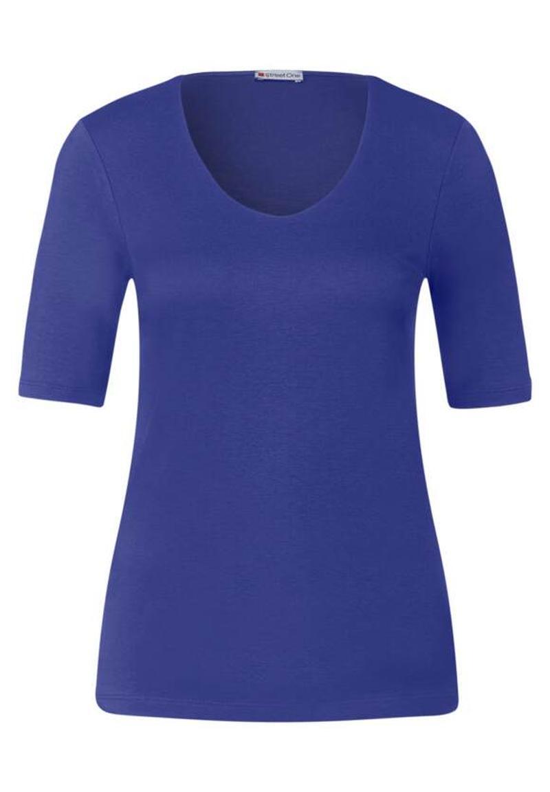 Dieses Street One Palmira T-Shirt ist ein echter Basic, den du immer anziehen kannst! Mit dem lässigen V-Ausschnitt und Halbärmeln sitzt es einfach perfekt. Aus weicher Baumwolle mit Baumwollfutter auf der Vorderseite - also super blickdicht und angenehm zu tragen. Der körpernahe Schnitt ist leicht tailliert und schmeichelt deiner Figur. In Größe 38 ist es etwa 64cm lang mit 90cm Brustumfang - also genau die richtige Länge. Perfekt für alle Alltagssituationen: Ob zur Jeans, unter einen Blazer fürs Büro oder einfach so für einen entspannten Tag. Sieht alleine gut aus oder als Unterteil für andere Kleidungsstücke. Einfach anziehen und du fühlst dich sofort wohl! Street One Qualität die hält, was sie verspricht. Waschbar und pflegeleicht - genau das, was man von einem guten Basic erwartet!