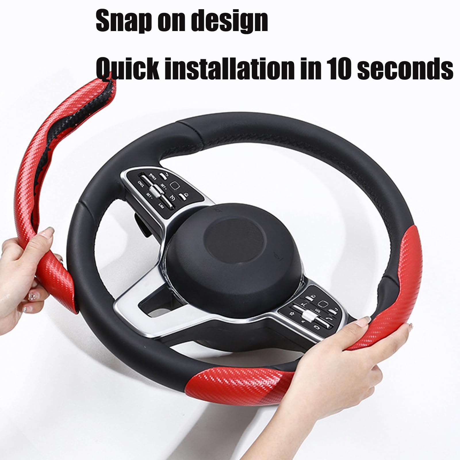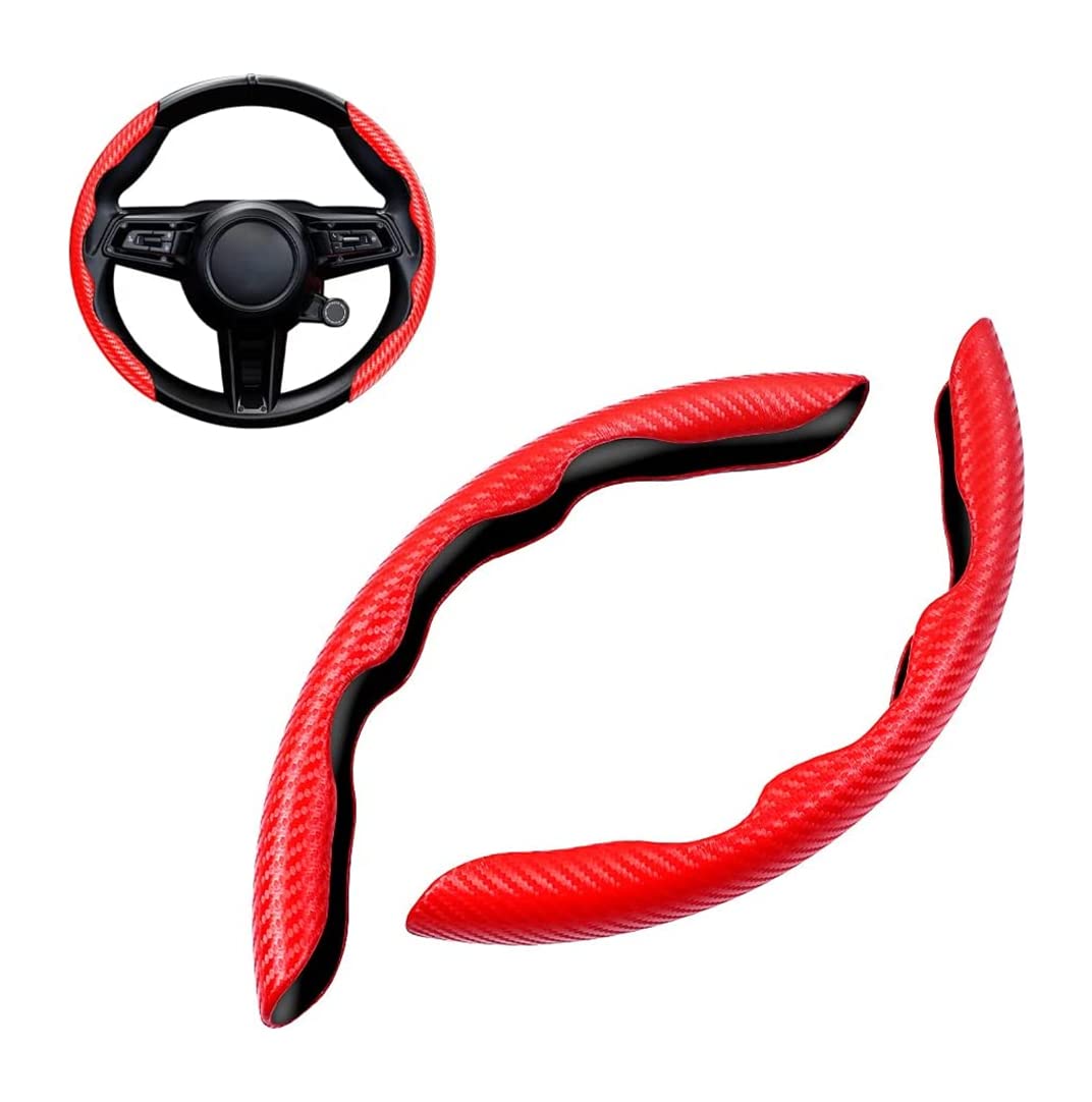 Mach dein Lenkrad bequemer und stylischer! Diese 2-teilige Abdeckung in Kohlefaser-Optik sieht nicht nur sportlich aus, sie verbessert auch den Griff. Die robuste, doppellagige Schale schützt dein Original-Lenkrad, während das flexible Silikon-Innenmaterial für einen angenehmen und rutschfesten Halt sorgt. Die Montage ist supereinfach und werkzeuglos - einfach auflegen und festdrücken. Passt für die meisten runden oder D-förmigen Lenkräder mit etwa 38 cm (15 Zoll) Durchmesser. Die integrierten Entlastungstasten sorgen dafür, dass sich die Abdeckung perfekt anpasst. Verleihe deinem Fahrzeuginnenraum sofort ein aufgewertetes, individuelles Look - für mehr Fahrspaß und Komfort bei jeder Fahrt.