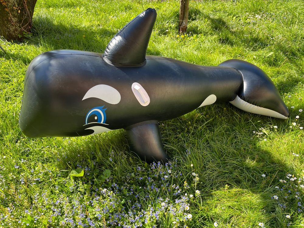 Riesenspaß im Wasser! Dieser aufblasbare Orca von Orca-Reitwal wird zum absoluten Liebling deiner Kinder im Pool, See oder Meer. Mit 193x119cm richtig groß und eindrucksvoll. Zwei stabile Haltegriffe geben sicheren Halt beim Reiten und Toben. Aus robustem Vinyl mit zwei separaten Luftkammern für extra Sicherheit. Belastbar bis 40kg - für Kinder ab 3 Jahren geeignet. Inklusive Reparaturflicken für lange Haltbarkeit. Einfach aufblasen und schon geht's ins Wasser-Abenteuer! Fördert spielerisch die Bewegung und den Spaß am Wasser. Perfekt für den eigenen Pool, Badesee oder Urlaub am Meer. Macht jeden Badetag zum unvergesslichen Erlebnis - tauche ein in die Welt der Meerestiere!