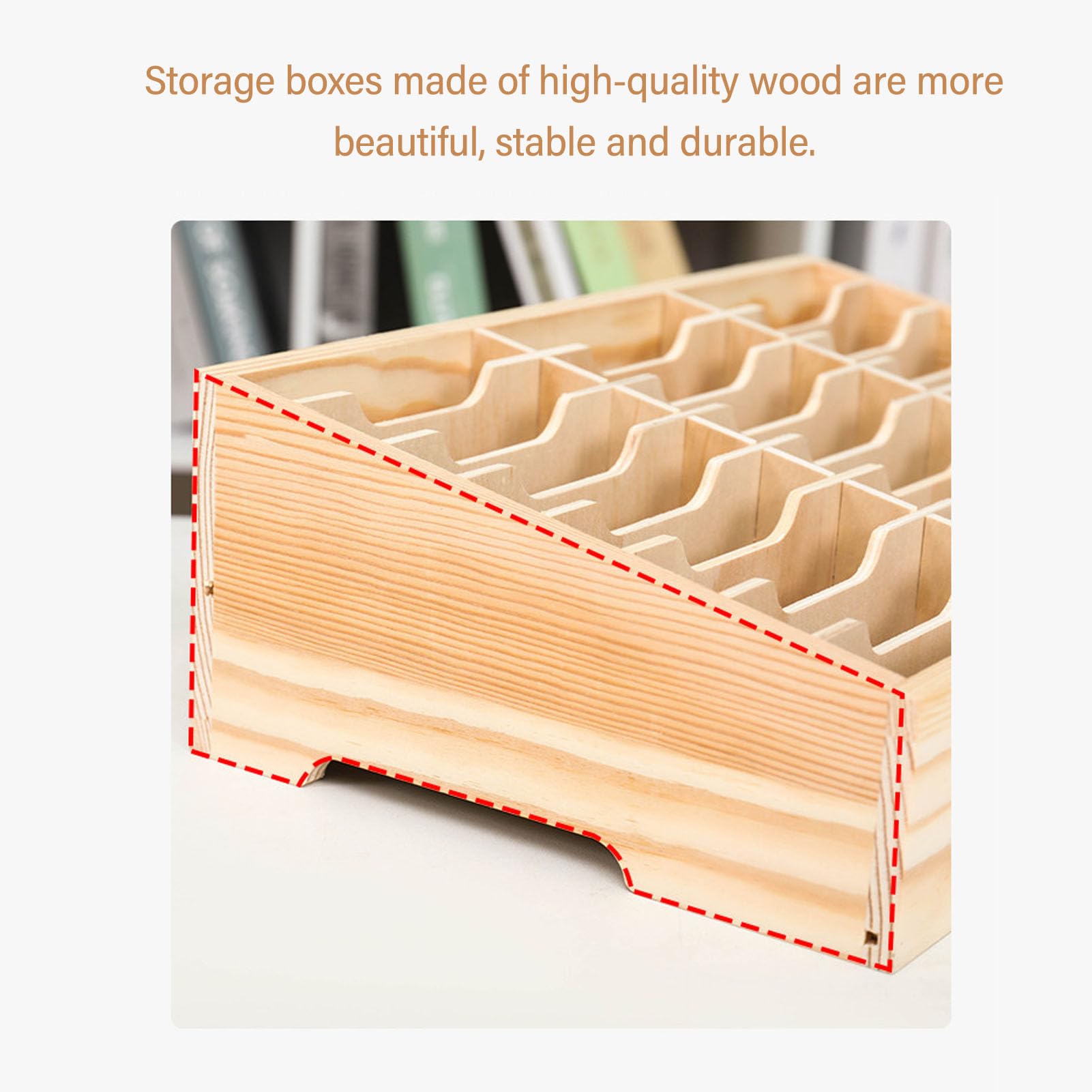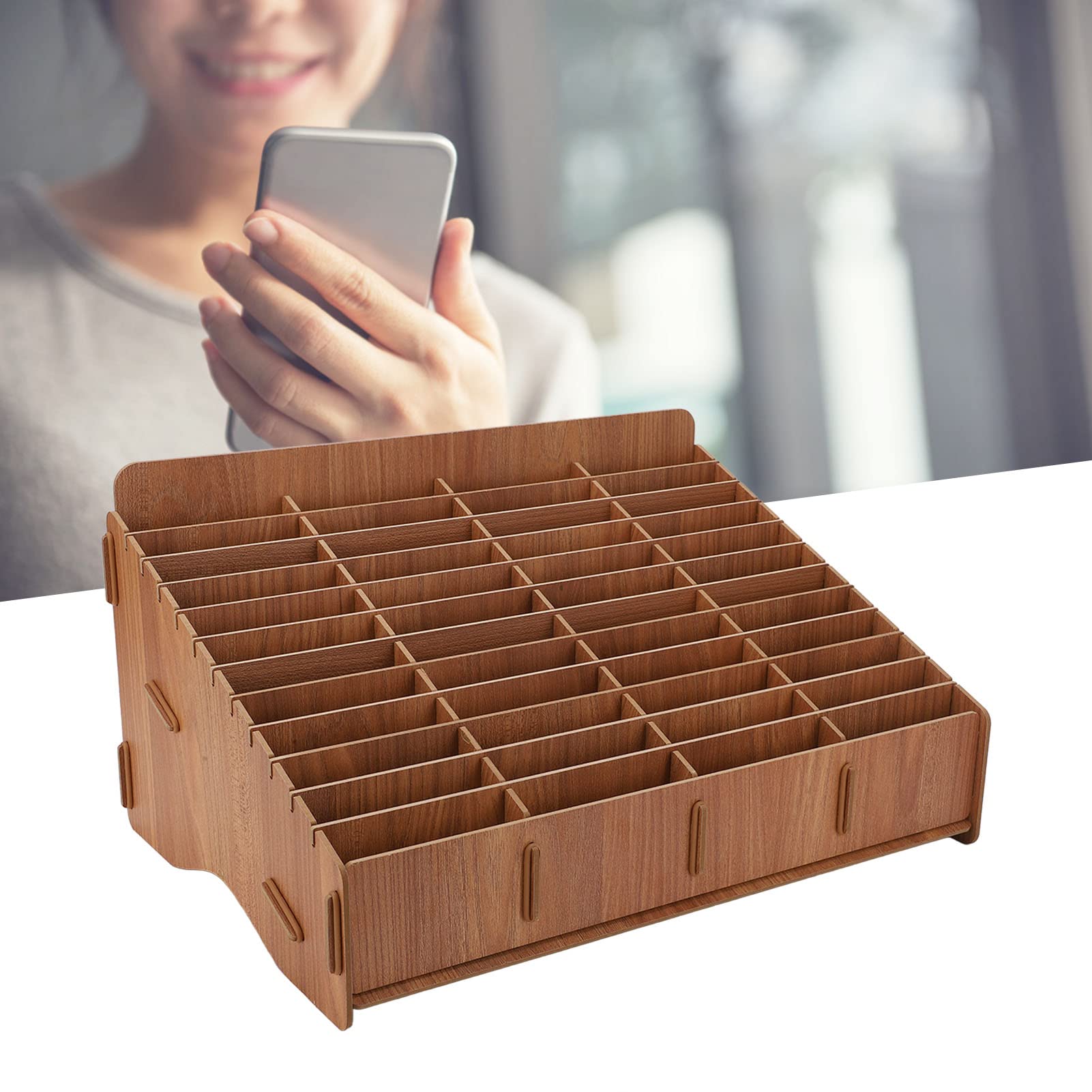 Endlich Ordnung auf dem Schreibtisch! Dieser hölzerne Handy-Organizer mit 12 Fächern ist genau das, was du brauchst. Aus natürlichem Kiefernholz gefertigt, riecht nicht nur gut, sondern ist auch super stabil. Maße: 21x15x8,6 cm - jedes Fach ist etwa 9,5x6x2 cm groß. Perfekt für Handys, Stifte, Scheren oder andere Kleinigkeiten, die sonst immer rumfliegen. Ob im Büro, im Klassenraum oder daheim - dieser Organizer bringt System in dein Chaos. Die offenen Fächer machen alles gut sichtbar und griffbereit. Einfach hinstellen und sofort mehr Ordnung haben. Sieht dazu noch total schick aus mit dem natürlichen Holz-Look. Mach dir das Leben leichter - hol dir diesen praktischen Helfer!