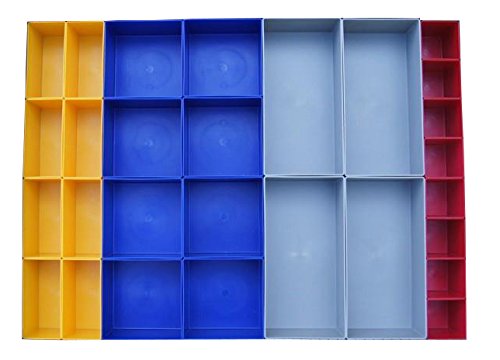Haha, kennst du das - Schubladen, wo alles wild durcheinander liegt? Damit ist jetzt Schluss! Dieses 32-teilige Set bringt System in deine Werkzeugschubladen. Aus stabilem Polystyrol, lebensmittelecht und schlagfest. Die Kästen sind 63 mm hoch und passen perfekt in Schubladen mit 60x44 cm Innenmaß. Du kriegst 12 kleine (54x54 mm), 10 mittlere (108x54 mm), 4 größere (108x108 mm), 4 große (162x108 mm) und 2 extra große (216x108 mm) Kästen. Super flexibel - du kannst sie je nach Bedarf anordnen. Schrauben, Bits, Nägel, Kleinteile - alles hat jetzt seinen Platz. Besonders praktisch für Werkbänke, Werkstatt-Schränke oder Hobby-Keller. Die blaue Farbe sieht nicht nur gut aus, sondern hilft auch, den Inhalt besser zu erkennen. Kein langes Suchen mehr - alles griffbereit! Und wenn sich deine Bedürfnisse ändern, einfach umsortieren. Spare Zeit und Nerven bei deinen Projekten. Einfach auspacken, in die Schublade legen und sofort besser organisiert sein. Sag goodbye zum Chaos - hello, efficiency!