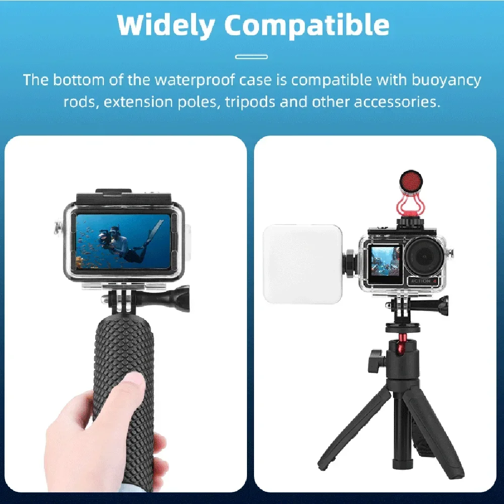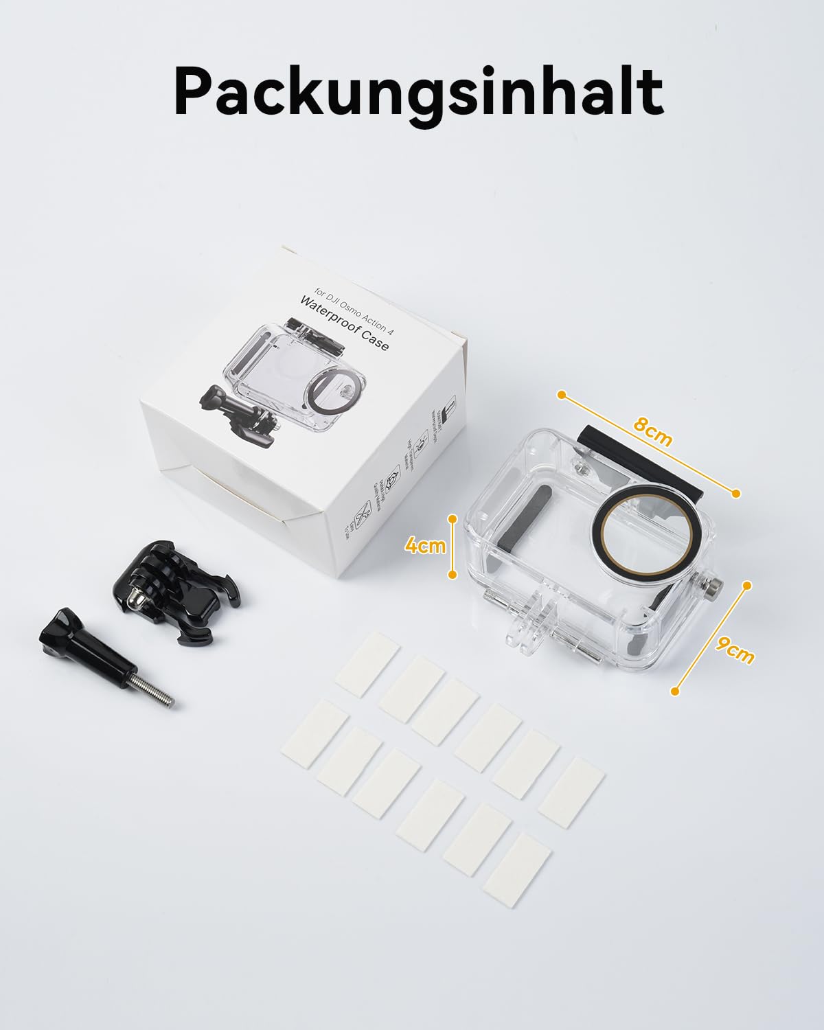 Nimm deine DJI Osmo Action 5, 4 oder 3 mit unter Wasser! Dieses wasserdichte Gehäuse von UTEBIT schützt deine Kamera bis 50 Meter Tiefe. Mit 12 Anti-Beschlag-Pads bleibt die Sicht immer klar, auch bei Temperaturunterschieden. Der hochdichte Gummidichtungsring hält das Wasser zuverlässig draußen. Das robuste PC-Material und gehärtete Glas schützen vor Stößen und Kratzern. Perfekt für Tauchen, Surfen, Schnorcheln oder andere Wassersportarten. Alle Tasten sind trotz Gehäuse gut erreichbar. Einfach Kamera reinsetzen, verschließen und abtauchen!