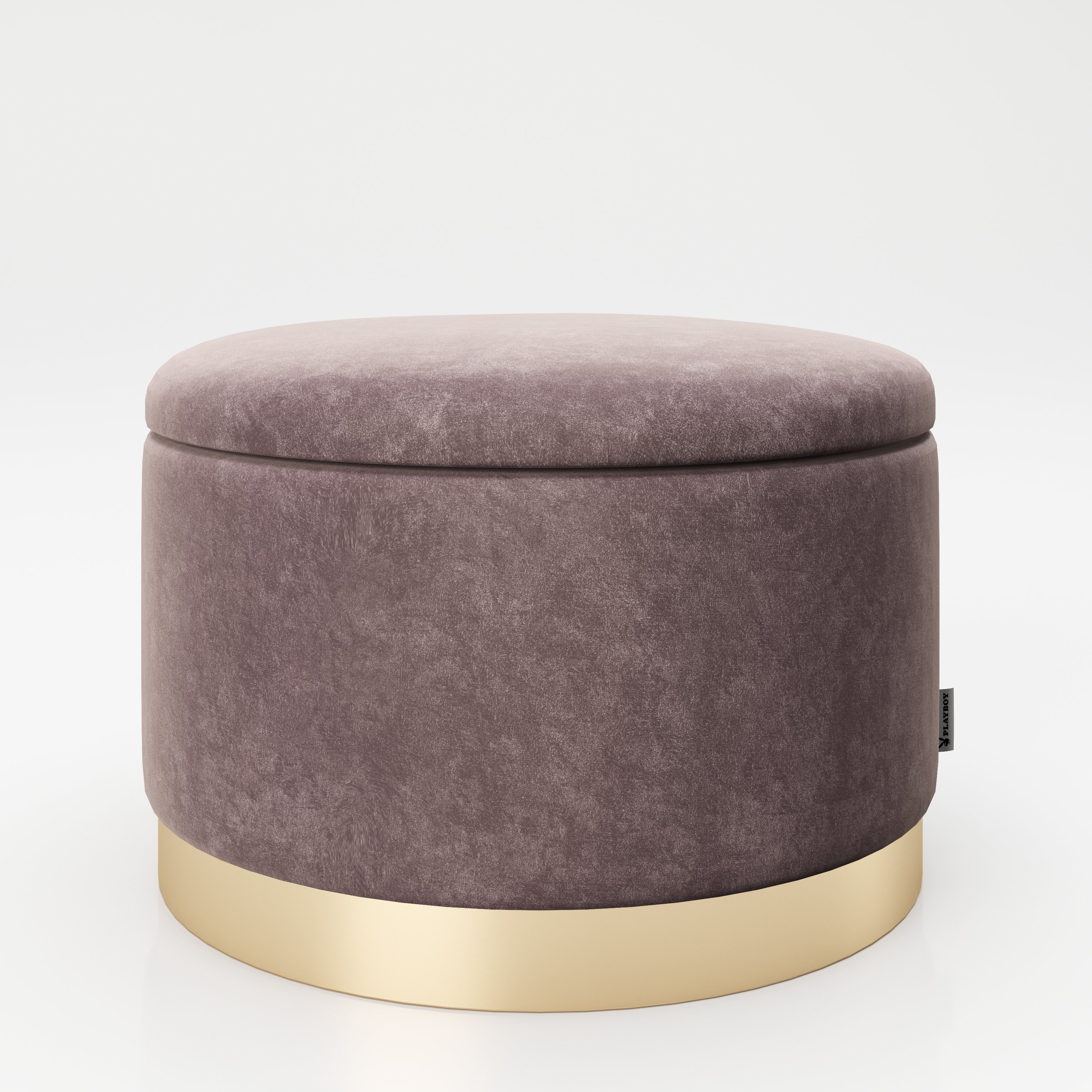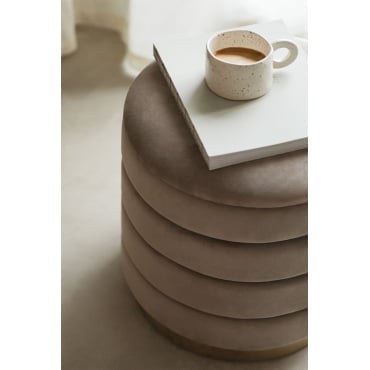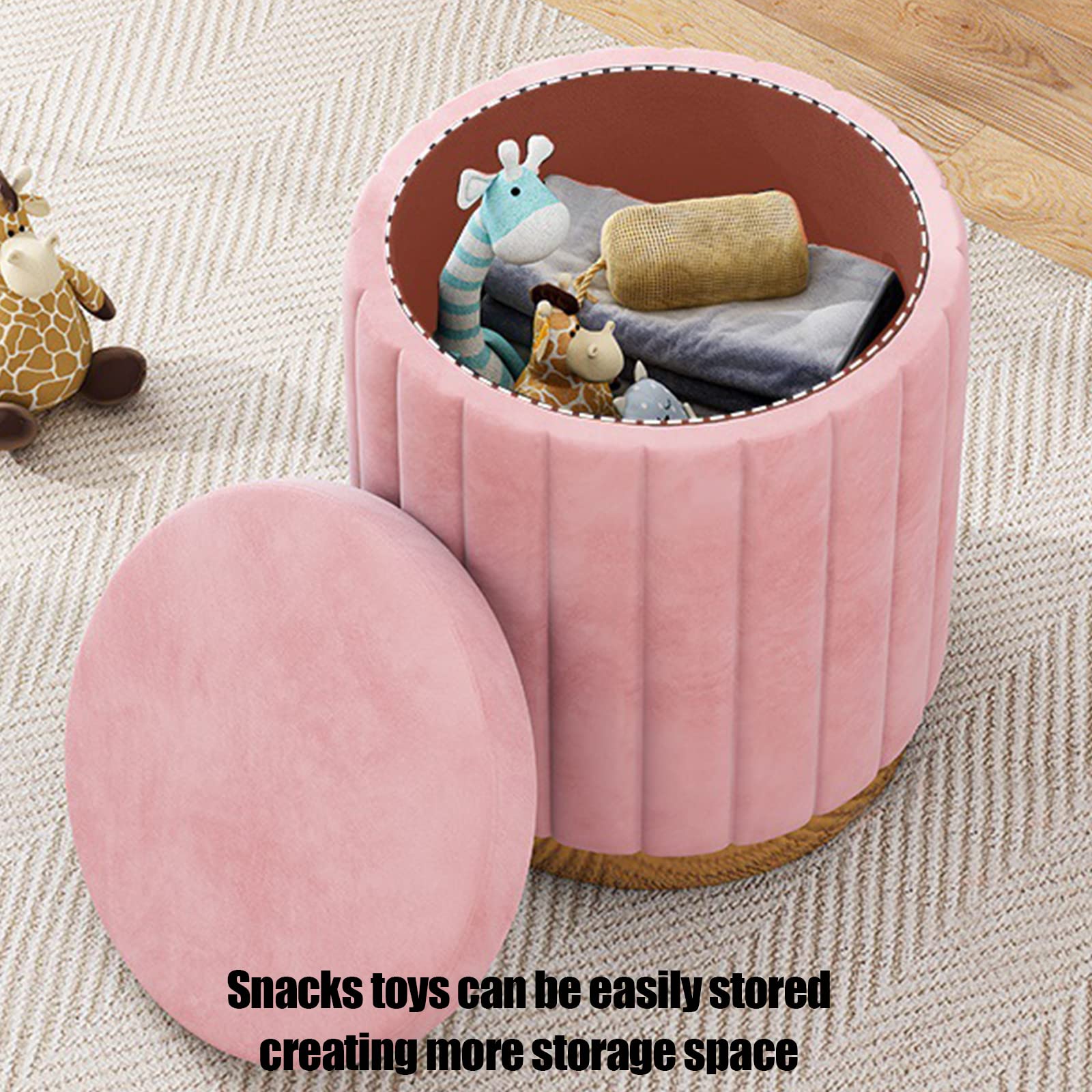 Stylish und praktisch! Dieser runde Samt-Ottoman in Beige mit goldener Basis ist ein echter Allrounder für dein Zuhause. Mit 34x34x45cm perfekt für kleine Räume, aber mit großem Stauraum unter dem Deckel.\n\nAus hochwertigem Kunststoff mit weicher Polsterung - bequem als Sitzgelegenheit oder Fußhocker. Die stabile Basis sorgt für Sicherheit und Langlebigkeit. Oberfläche leicht zu reinigen.\n\nVielseitig einsetzbar: Als Couchtisch, Beistelltisch, Schminkhocker oder zusätzliche Sitzgelegenheit. Passt perfekt ins Wohnzimmer, Schlafzimmer, Büro oder Eingangsbereich.\n\nIntegriert moderne Ästhetik mit praktischer Funktionalität. Verstau Decken, Kissen oder andere Kleinigkeiten platzsparend - Ordnung und Stil in einem!