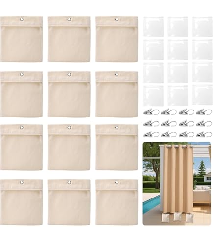 Lästige Vorhänge, die bei jedem Windstoß flattern? Diese Vorhangbeschwerer sind die Lösung! Im 4er-Set mit praktischen Metall-Clips und durchsichtigen PVC-Beuteln - einfach zu befüllen und zu verwenden. Jeder Beschwerer kann bis zu 450 Gramm aufnehmen - einfach mit Sand, Kies oder Erde füllen und das Gewicht individuell anpassen. Die rostfreien Metallclips halten bombenfest, ohne Bohren oder Kleben! Perfekt für Gartenvorhänge, Pavillons, Markisen oder Terrassenüberdachungen. Aber nicht nur das: Auch super für Tischdecken beim Picknick, Strandmatten oder Duschvorhänge! Aus verstärktem Segeltuch - extrem langlebig und wetterbeständig. Einfach clipen, beschweren und genießen - keine flatternden Vorhänge mehr!