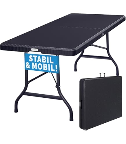 Boah, dieser Klapptisch von VEVOR ist ja mal richtig praktisch! Mit satten 180cm Länge finden da easy 4-6 Leute Platz - perfekt für die nächste Gartenparty oder Camping-Tour. Aus robustem HDPE-Kunststoff der bis zu 130kg aushält, und das Beste: Er klappt in Sekunden zusammen auf nur 2,8cm Dicke! Mit integriertem Griff kannst du ihn easy mit einer Hand tragen. Die dreieckigen Beine mit Gummikappen sorgen für mega Stabilität, selbst auf unebenem Boden. Ob für Grillfeste, Picknicks oder als Basteltisch - der macht einfach alles mit. Und keine Sorge um Flecken, die Oberfläche ist wasserdicht und kratzfest. Einfach aufklappen, hinstellen und Party machen!
