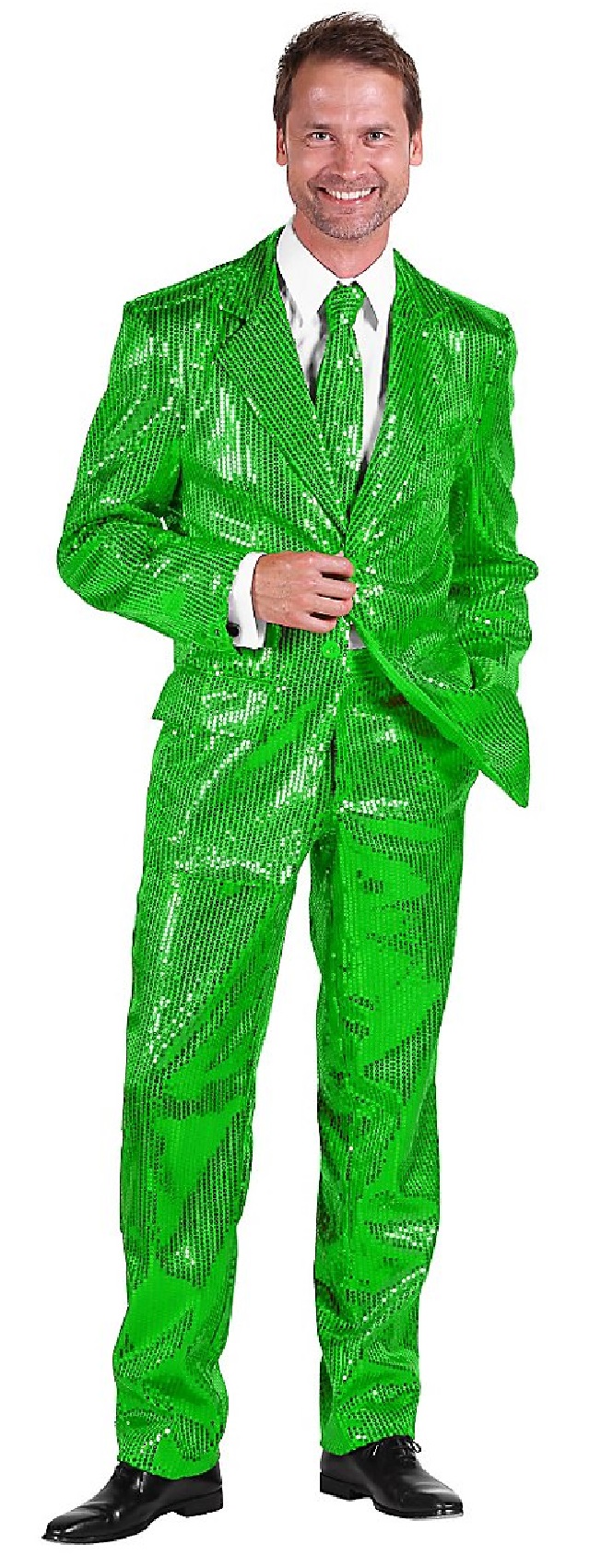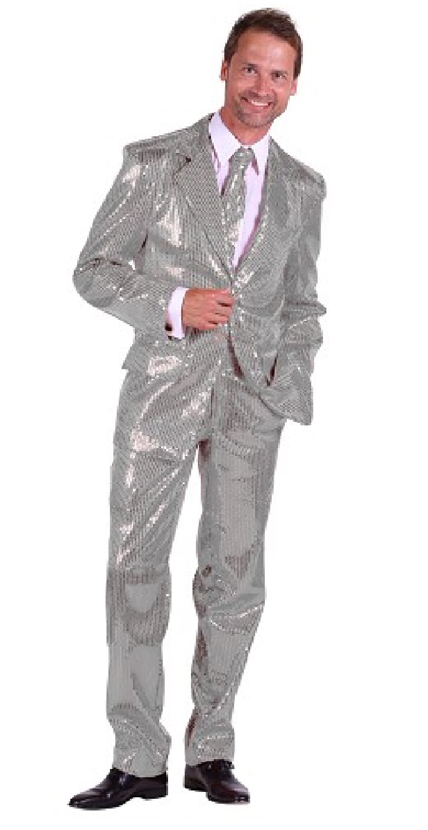 Bereit für die nächste Party? Dieser glitzernde 2-teilige Anzug macht dich zum Star auf jeder Dancefloor! Mit auffälligem Pailletten-Druck und 80er-Jahre-Vibe – perfekt für Disco, Karneval, Mottopartys oder als ausgefallenes Business-Outfit.