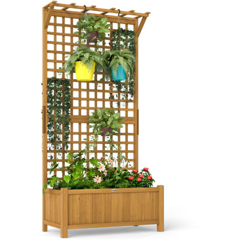 Wow, grüner Daumen mal anders! Dieses Outsunny Wand-Hochbeet mit integriertem Rankgitter ist perfekt für kleine Gärten. Mit 90x45x170 cm bietet es Platz für Blumen, Kräuter oder sogar Gemüse. Aus stabilem Massivholz gebaut und mit Drainage-Löchern gegen Staunässe. Das Rankgitter ist ideal für Kletterpflanzen oder um Lichterketten zu drapieren - sieht mega romantisch aus! Einfach zusammenbauen und auf Balkon, Terrasse oder im Garten platzieren. Jeder Pflanzkasten hält bis zu 15 kg aus. Mach deinen grünen Traum warum und genieße frisches Gemüse oder blühende Pflanzen direkt vor der Nase. Perfekt für Stadtgärtner mit wenig Platz!